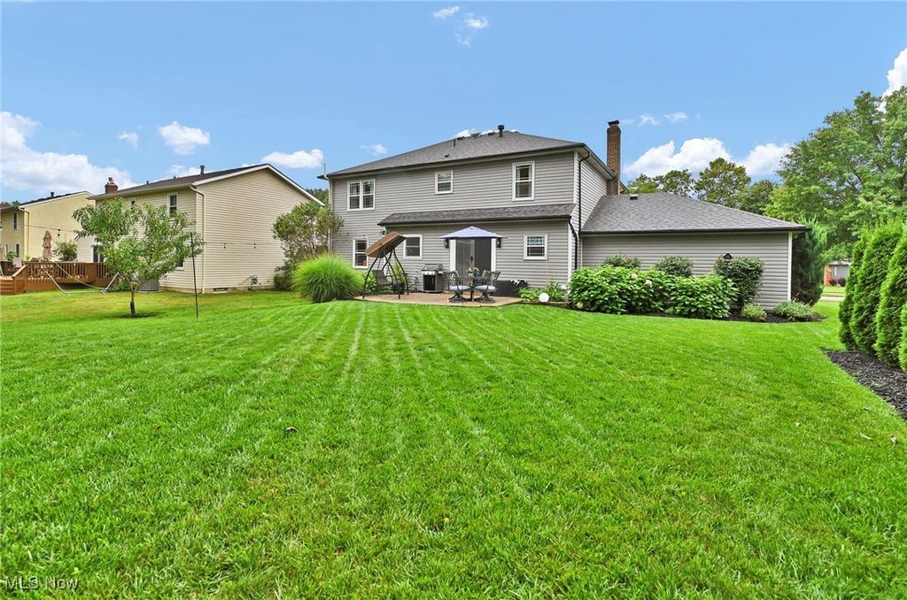 Beautifully Maintained Contemporary Colonial in Huntington Park Estates! This 4-bedroom, 2.5-bath home offers over 2,400 sq. ft. of updated living space. Major updates include a brand-new roof, gutters, and vinyl siding (2025), new windows throughout, a new garage door (2020), and a quiet belt-drive garage door opener with battery backup (2021). A full sprinkler system, professionally serviced in 2025, adds peace of mind. The home features a 1,200 sq. ft. unfinished basement - perfect for storage or future living space. An inviting two-story foyer with neutral tones and two entry closets leads to the family room, complete with a cozy gas fireplace, beamed ceiling, granite wet bar/coffee bar, and custom handmade barn door. The remodeled kitchen (2017) flows into the dining area and includes Shenandoah cabinets with soft-close doors, granite countertops, an island, updated stainless steel appliances, pantry, breakfast bar, and a sliding door to the backyard. The first-floor laundry room has a built-in storage cabinet and direct garage access. Upstairs, the primary suite offers a vaulted ceiling, walk-in closet, and private bath. Two bedrooms share a Jack & Jill style closet while keeping their own closets, and a fourth bedroom is ideal for guests, an office, or playroom. Residents enjoy Huntington Park Estates' pool, basketball courts, and tennis courts. With thoughtful updates, great amenities, and an ideal location, this home checks all the boxes! Schedule your private showing today!