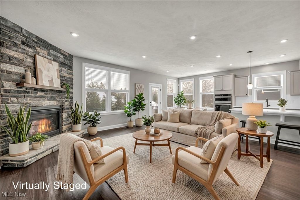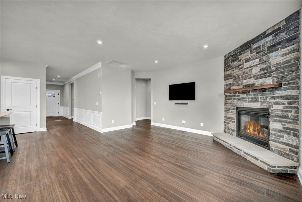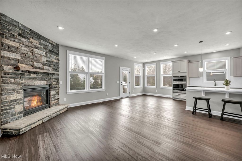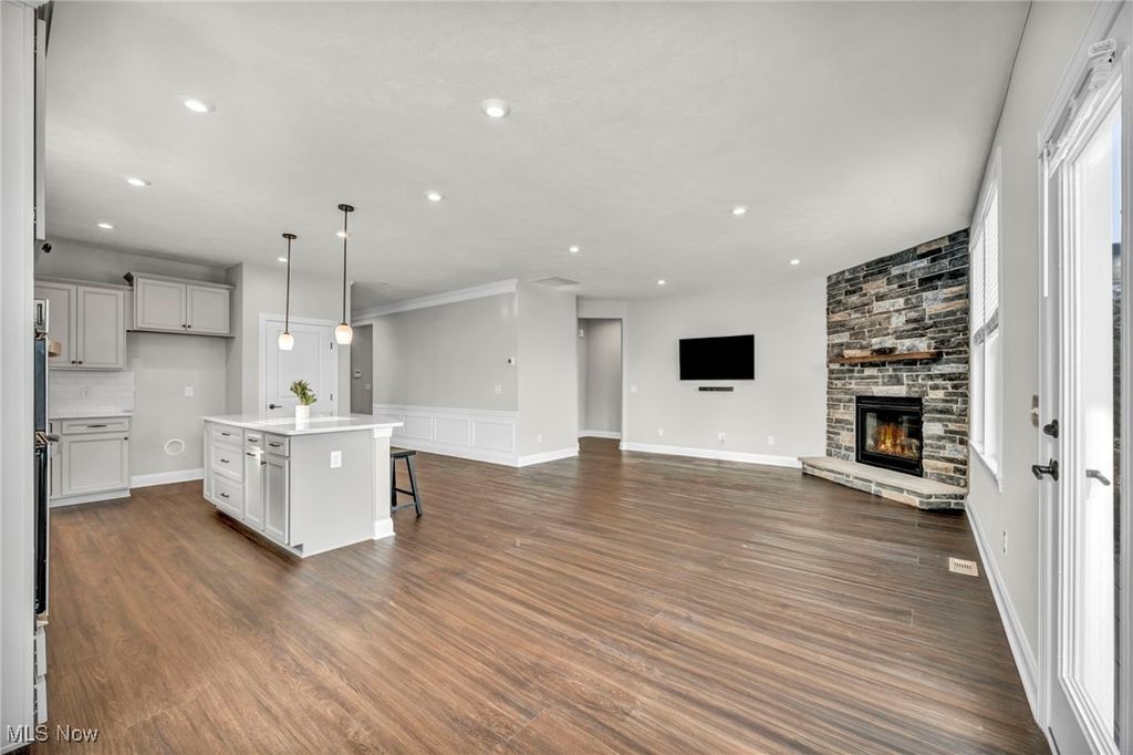 Welcome home to this luxury ranch home in the sought-after Ledges of Avery Walden. An open floor plan showcases modern finishes, soaring ceilings, and a stunning custom stone fireplace in the great room. The chef's kitchen features stainless steel appliances, a five-burner cooktop, quartz countertops, plenty of cabinetry, and a statement island. The first-floor primary suite offers a spacious bedroom, full bath, and walk-in closet, while a second main-level bedroom and full bath. Additional highlights include a private office with French doors, first-floor laundry, and custom built-ins and bench near the in the mudroom. The finished lower level adds a bedroom with egress window, full bath, and flexible living space. Enjoy outdoor entertaining on the paver patio. The two-car garage features a professionally epoxy-coated floor. Enjoy the low maintenance living that covers lawn maintenance, landscaping and snow removal. Conveniently located near parks, shopping, highways and all of your daily needs. Schedule your showing today!