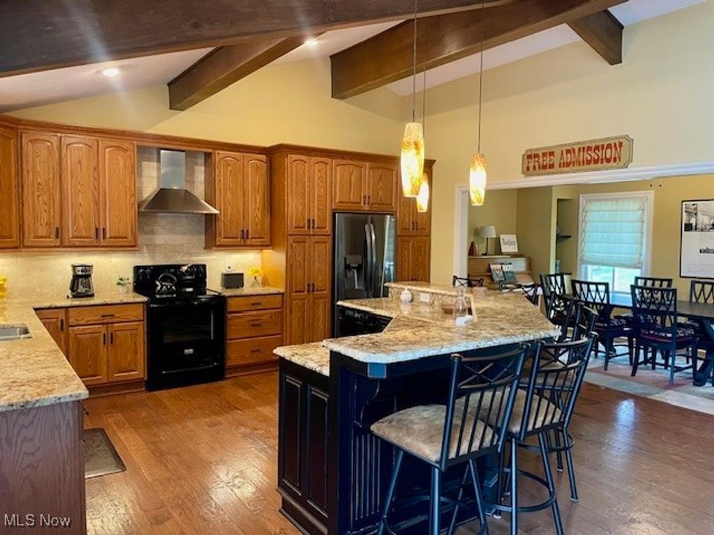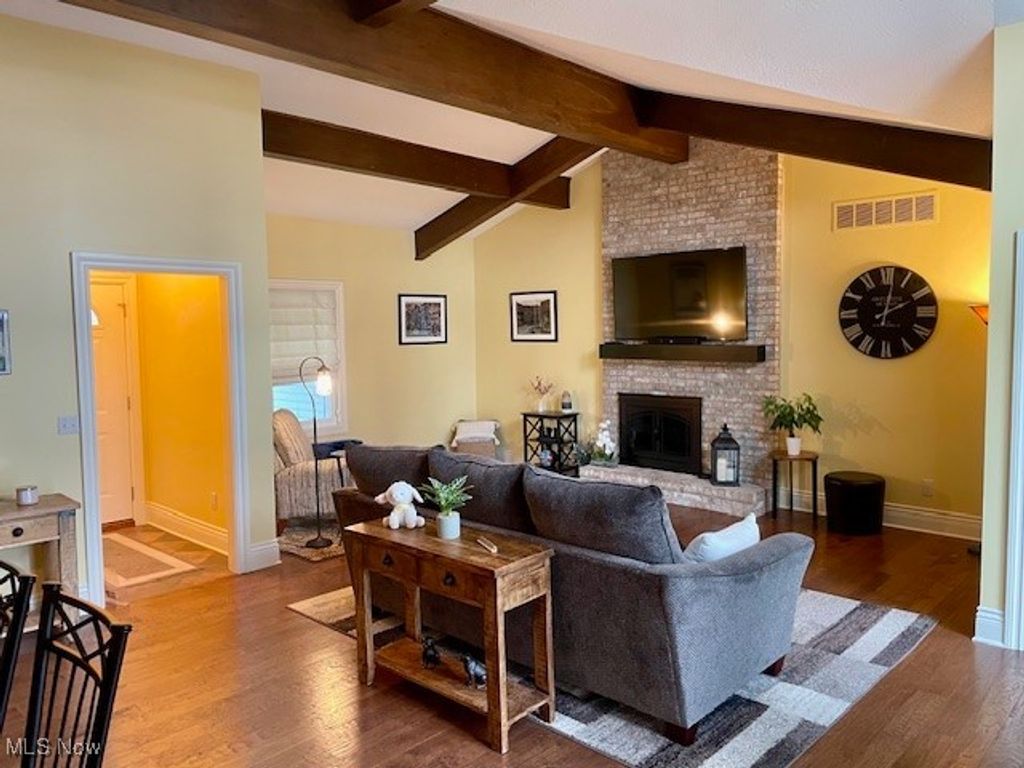 One of a kind stunning professionally remodeled 4 bedroom/2 Bath Ranch in move-in condition! From the moment you enter, you will be wowed! This Indian Creek Ranch home has been extensively remodeled by a custom builder to create a contemporary, open-concept that is perfect for entertaining. The open Kitchen and Great Room occupy one spacious area with engineered hickory floors. The Kitchen is a Gourmet Cook's dream! It is accented by premium granite countertops, an abundance of customized cabinets, and has a huge eating bar that is open to the Great Room which has rustic beams and a floor-to-ceiling gas fireplace. Off the Kitchen you will find a cozy, yet generous size, Dining Room that can accomodate a large table for more intimate dining experiences. Relax and enjoy the cheery Sunroom with sliding doors to a patio that provides an intimate gathering outdoor space. Your family and friends will be sure to enjoy the private, manicured backyard, as you meander and relax under the pergola. There is also a great storage shed with a garage door for easy access to additional storage for outdoor equipment, etc. The spacious Master Bedroom has a large closet and a private bath with shower. You will find 3 additional Bedrooms, each with plenty of closet space. The Main Bath doubles for guests as well. The Laundry/Mudroom is convenietly located between the garage and the main living area and serves as a Mudroom. There you will find an energy-saving tankless water heater, a newer gas furnace, as well as a laundry tub, and utility closet. The oversized 2-car garage has running water, a drain and plenty of extra storage. Most recent updates include vinyl double pane single hung windows 3/23, Furnace and Air Conditioning 7/23, Newer Washer, Dryer and Refrigerator. Enjoy Middleburg Hts Community Center with indoor and outdoor pools, an exercise facility and more! Located close to Cleveland Hopkins International Airport, I-71, I-480 & the Ohio Turnpike! Minutes from Southpark Mall!
