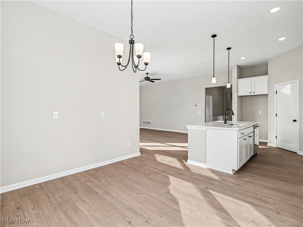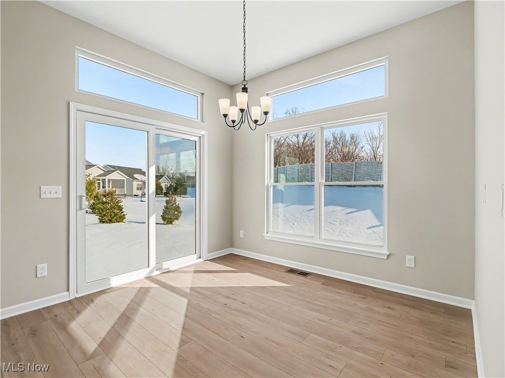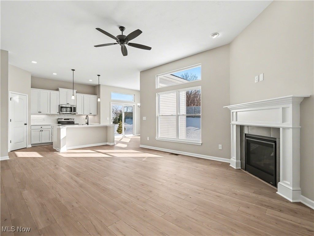 This 3 bedroom, 2 full bath BRAND NEW Ranch Cluster Home with Basement, can be YOURS TODAY! Kensington Homes Inc. was Recently named "Best Cluster Home Community Development" at the 2024 HBA Cleveland Choice Awards, and has built another popular Brighton Ranch in Strongsville, at The Reserves at Pine Lakes Village, where lawn maintenance and snow removal is $145/month. A covered front entry leads to a nice foyer with beautiful wainscoting with night lights throughout the main hallways! 10' ceilings in the kitchen, great room and dinette, and 9' in the rest of the home. The Great room features a custom gas direct vent fireplace and is open to kitchen and dinette areas. Luxury Vinyl flooring is upgraded in every room except carpeted bedrooms. Kitchen has extra height white shaker cabinets with soft close hinges on doors and drawers. Quartz tops in kitchen and both bathrooms, GE Energy Star appliances including stove, under-cabinet microwave and dishwasher. LVP flooring in kitchen, dinette, hallway, pantry, foyer, laundry and main bath. Owners suite has tray ceiling, huge walk-in closet while Owners bath features a 5' shower with corner seat, LVT flooring, the sylish black fixture faucets, door knobs, shower doors, etc. The gorgeous open stairway to basement shows a finish landing/small room, with double doors that lead to an unfinished basement which is plumbed for a third bath. Basement has 9' ceilings! Entry off the garage showcased a finished bench/cubby area that our clients love! Included in price is a fully landscaped lot after the driveway and front walk are poured. "The Reserve" is the Cluster Home section of Pine Lakes. Homeowners enjoy all of the amenities of Pine Lakes club house, walking trail, tennis courts, etc. for $225/year.