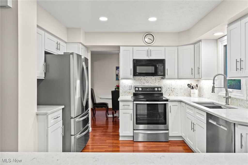 Beautifully maintained and tastefully updated, this four-bedroom, two-and-a-half-bath colonial is ideally situated on a quiet cul-de-sac in Strongsville. Set on a wooded lot, the home welcomes you with a charming front sitting porch and a warm, inviting interior. Meticulously maintained and sparkling clean, the home features a bright living and dining room filled with natural light, an inviting family room, and a beautifully updated kitchen (2022) with modern finishes, stainless steel appliances and a large island with seating - perfect for everyday meals or entertaining. Sliding glass doors off the kitchen lead to a large back deck, ideal for casual outdoor enjoyment. The first floor also includes a recently updated half bath and a convenient laundry room. Upstairs, you'll find four comfortable bedrooms, including a spacious primary suite with a renovated full bathroom (2023). The second full bath was also tastefully updated in 2023, and brand-new carpeting throughout the second floor (2025) adds a fresh, clean touch. A two-car attached garage adds everyday convenience, and the large unfinished basement provides ample room for storage or future finishing potential. With many thoughtful and expensive improvements already completed, this home offers peace of mind and easy move-in readiness. A solid, well-cared-for property in a peaceful, established neighborhood!