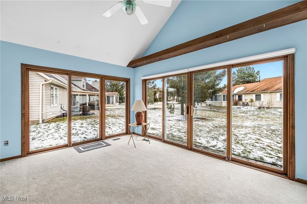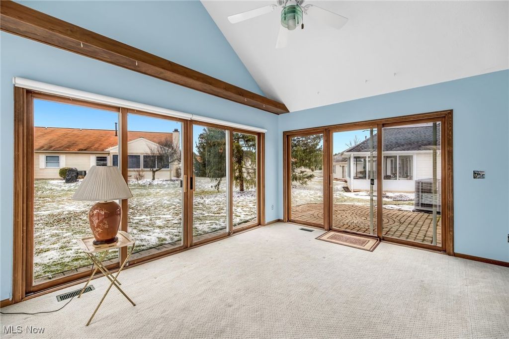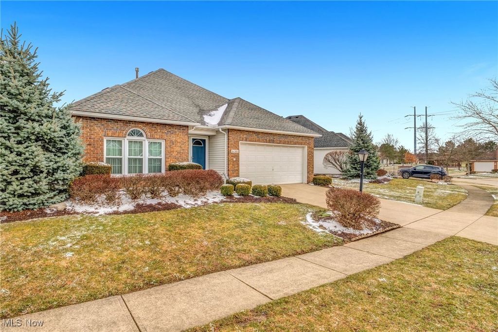 Welcome to your dream retreat at 16385 N Laguardia Parkway, Strongsville! This charming ranch cluster home offers the perfect blend of comfort and elegance, ideal for those seeking a cozy yet refined living space. Spread across a thoughtful 1,668 sq ft, this residence features two spacious bedrooms and two well-appointed bathrooms, promising an inviting home environment. Step into the carpeted living room where warmth emanates from the gas fireplace, providing an ideal space for relaxation and entertaining. The eat-in kitchen, complete with linoleum floors, boasts ample counter and cabinet space, perfectly catering to culinary enthusiasts. Adjacent to this is a carpeted formal dining room, ready for intimate dinners or family gatherings. The home's primary bedroom serves as a personal oasis, featuring a private bathroom and a generous closet, ensuring ample storage. An additional bedroom offers versatility, while the second bathroom is conveniently positioned for guests. For everyday ease, the laundry/mud room provides direct access to the two-car attached garage, facilitating seamless entry and organization. Enhance your indoor experiences in the large sunroom, adorned with vaulted ceilings and plush carpeting, perfect for relaxation or as a space to entertain guests. Outside, a brick patio and grassy backyard invite outdoor enjoyment, be it for leisurely afternoons or hosting barbecues. Located in Strongsville, this property benefits from an annual HOA fee of $425, which includes exterior maintenance, a pool, and recreation facilities. Additionally, a condo maintenance fee of $135 per month covers snow removal and landscaping, ensuring a hassle-free outdoor experience. Discover convenience at your doorstep with nearby shopping and dining options and immerse yourself in this sought-after community. Don't miss the chance to make this exquisite property your new home. Contact us today to schedule a viewing and experience the lifestyle you've been dreaming about!