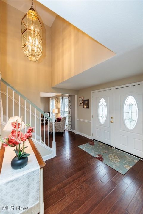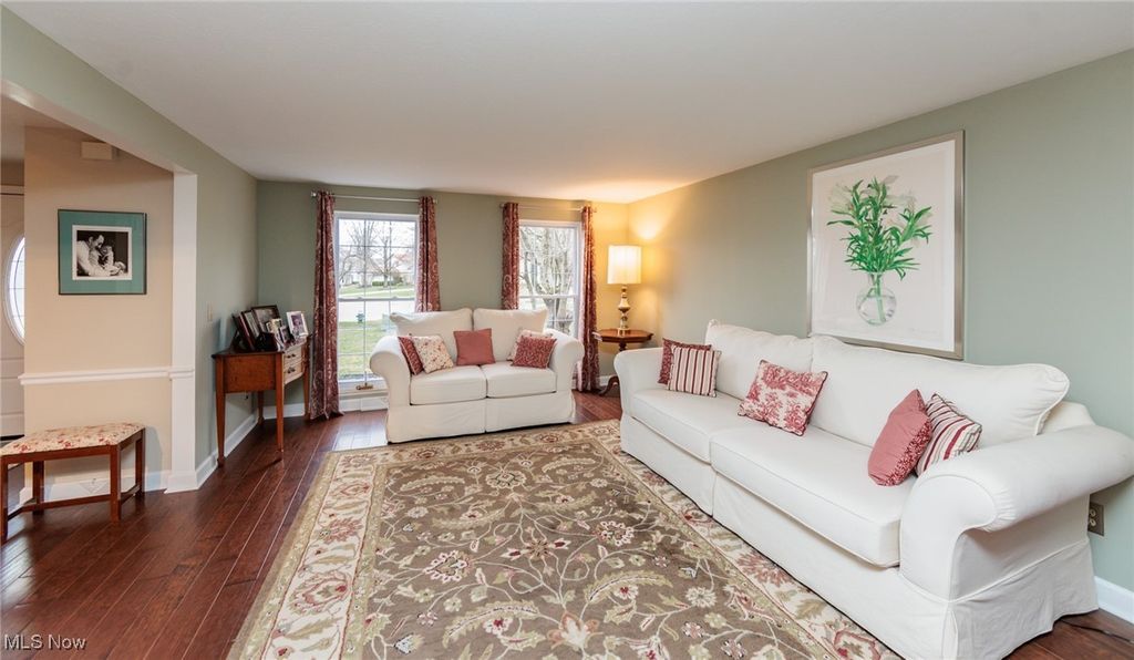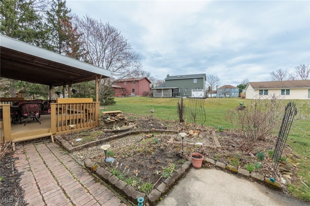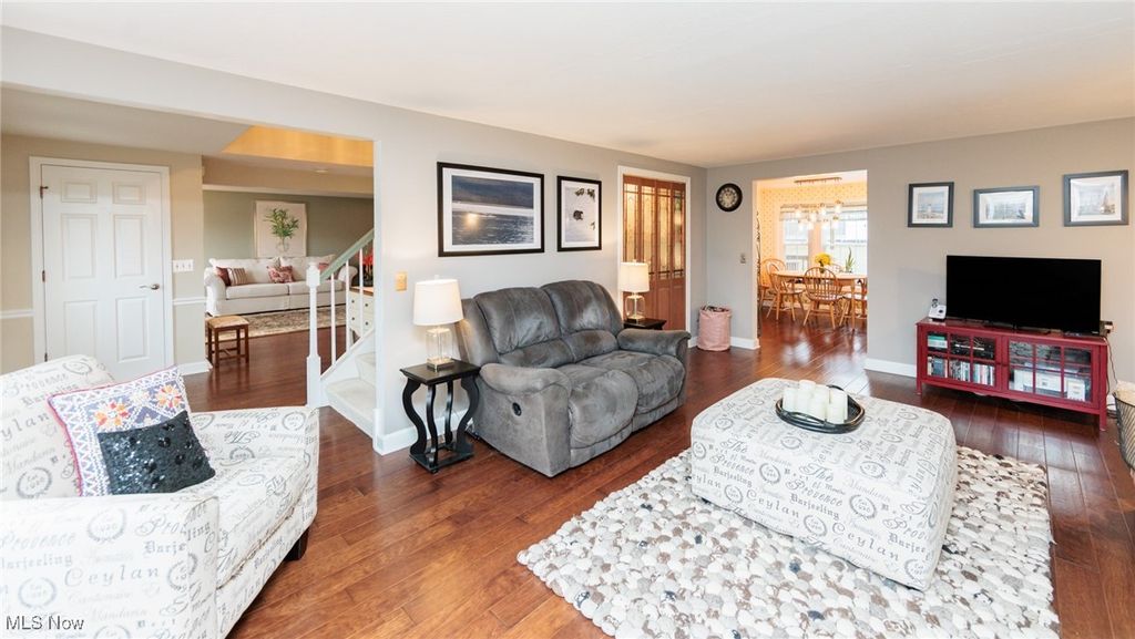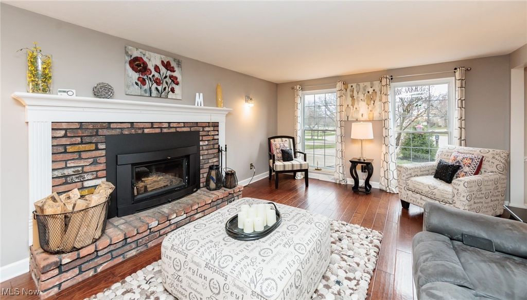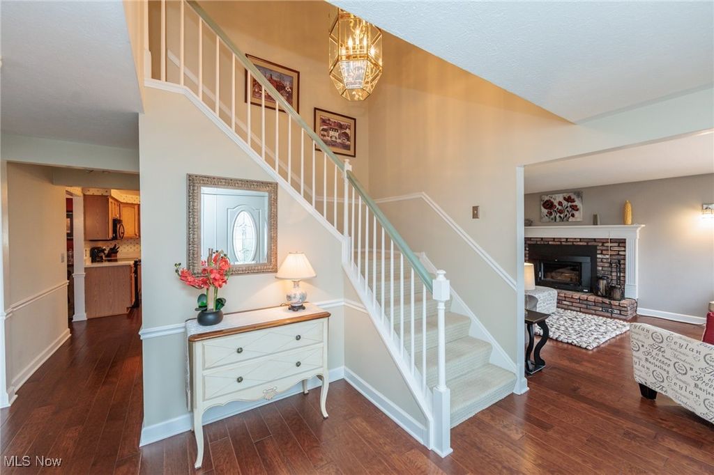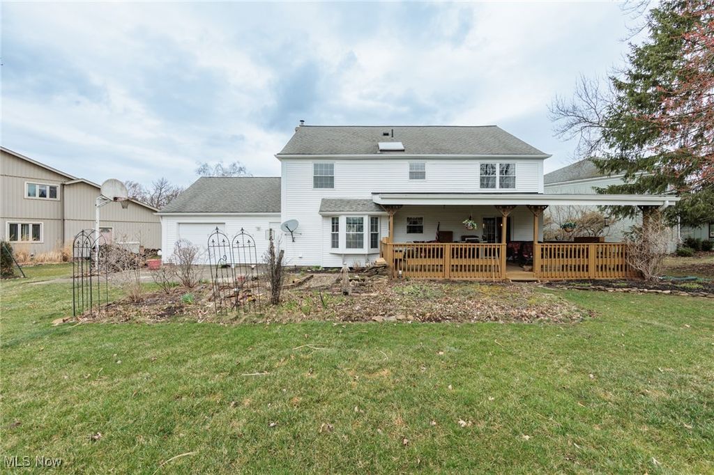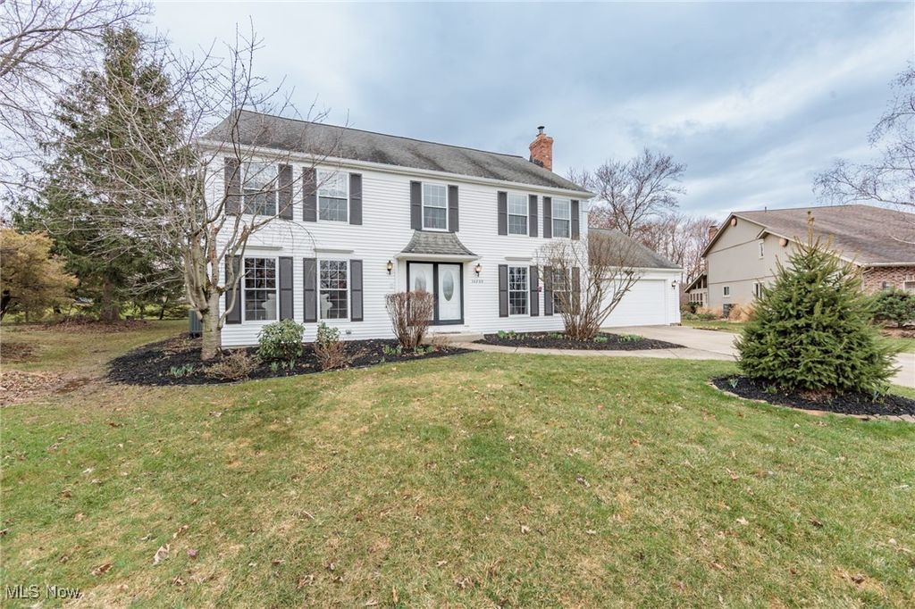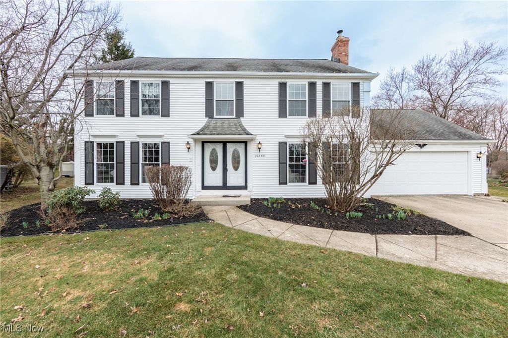 Welcome Home to this charming 4 bedroom, 3.5 bath Classic Colonial, nestled on a cul-de-sac street in Strongsville's Hunting Meadows neighborhood. Step inside to an elegant 2 story foyer that leads into the spacious and sun filled family room, where a cozy brick fireplace and built-in wet bar create the perfect atmosphere for relaxing or entertaining. The lovely living room flows seamlessly into the delightful formal dining room, ideal for hosting holiday gatherings. The eat-in kitchen offers warm wood cabinetry, ample counter space, a bay-windowed dining area, and a pantry for extra storage. A convenient powder room and laundry room complete the main level. Upstairs, the gracious staircase leads to 4 comfortable bedrooms and 2 full baths, including a primary suite featuring a walk-in closet and a vaulted en-suite bath with a beautiful vanity, skylight, and a large tiled walk-in shower. The expansive finished basement, complete with a full bath, provides endless possibilities for recreation, a home office, or additional living space. Outside you will enjoy the large covered back deck, extended patio area, and dedicated garden space. The backyard offers ample room for outdoor activities, while the utility door and garage door access add extra convenience. Notable updates include a freshly painted exterior (2024), warm wood flooring throughout the main level (2016), and an updated HVAC system (2017). A home warranty is also included for added peace of mind. Located just minutes from Strongsville's top amenities, shopping, dining, and parks, this home offers the perfect blend of comfort and convenience. Don't miss this wonderful opportunity!