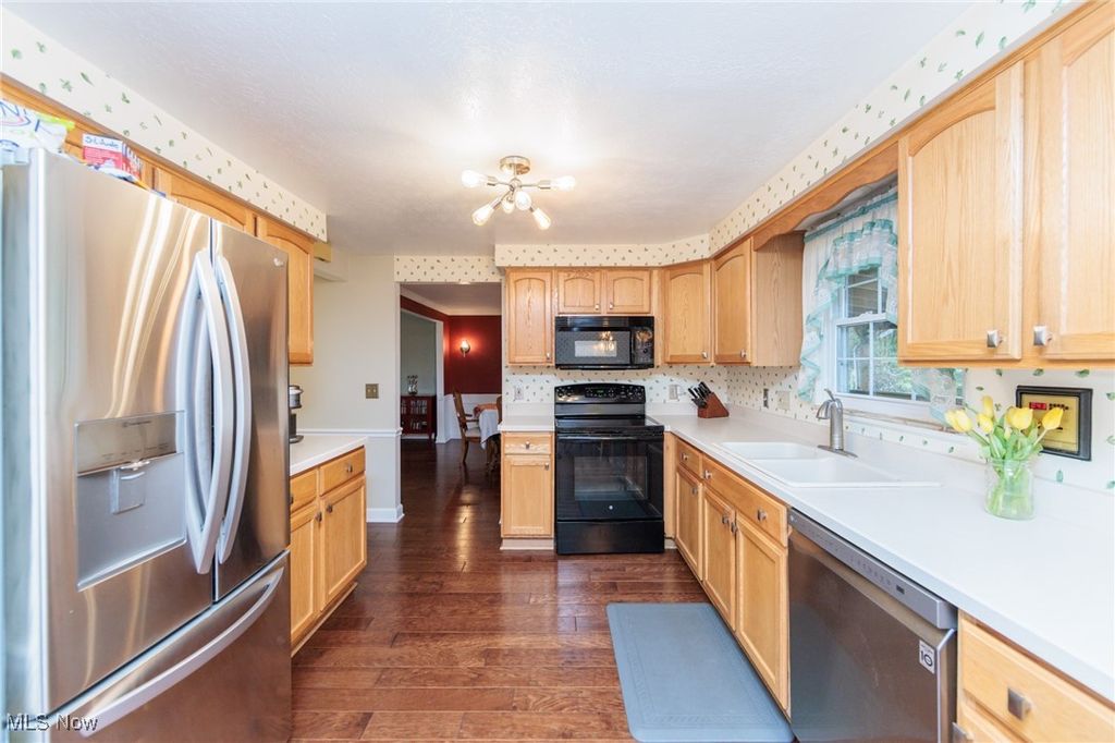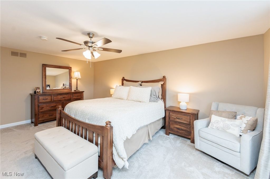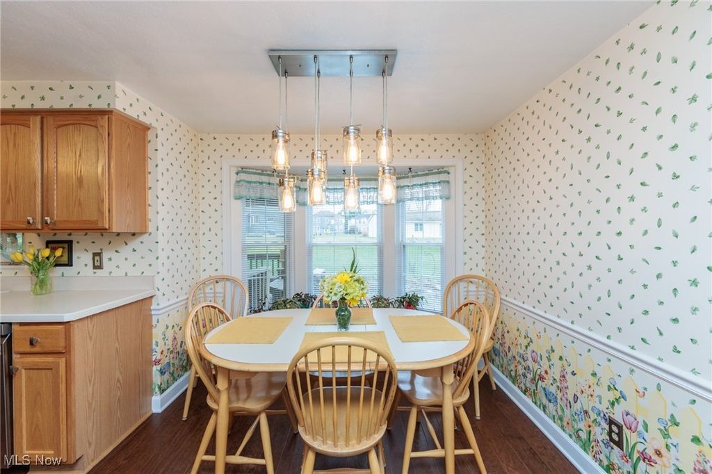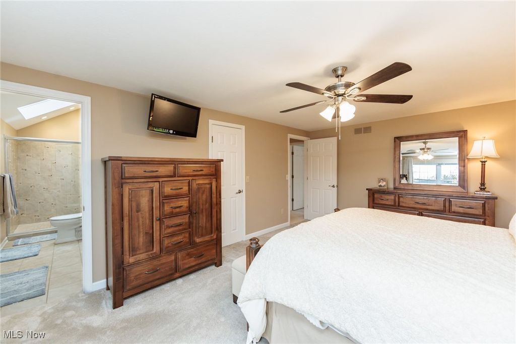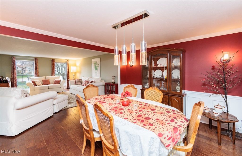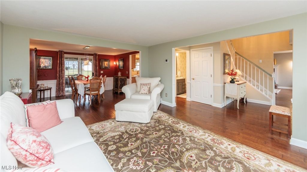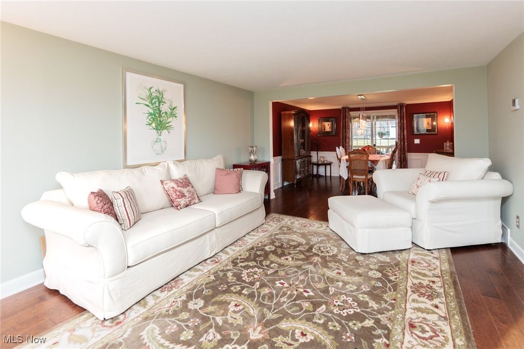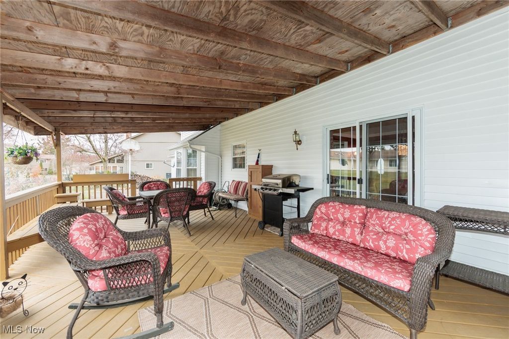 Welcome Home to this charming 4 bedroom, 3.5 bath Classic Colonial, nestled on a cul-de-sac street in Strongsville's Hunting Meadows neighborhood. Step inside to an elegant 2 story foyer that leads into the spacious and sun filled family room, where a cozy brick fireplace and built-in wet bar create the perfect atmosphere for relaxing or entertaining. The lovely living room flows seamlessly into the delightful formal dining room, ideal for hosting holiday gatherings. The eat-in kitchen offers warm wood cabinetry, ample counter space, a bay-windowed dining area, and a pantry for extra storage. A convenient powder room and laundry room complete the main level. Upstairs, the gracious staircase leads to 4 comfortable bedrooms and 2 full baths, including a primary suite featuring a walk-in closet and a vaulted en-suite bath with a beautiful vanity, skylight, and a large tiled walk-in shower. The expansive finished basement, complete with a full bath, provides endless possibilities for recreation, a home office, or additional living space. Outside you will enjoy the large covered back deck, extended patio area, and dedicated garden space. The backyard offers ample room for outdoor activities, while the utility door and garage door access add extra convenience. Notable updates include a freshly painted exterior (2024), warm wood flooring throughout the main level (2016), and an updated HVAC system (2017). A home warranty is also included for added peace of mind. Located just minutes from Strongsville's top amenities, shopping, dining, and parks, this home offers the perfect blend of comfort and convenience. Don't miss this wonderful opportunity!