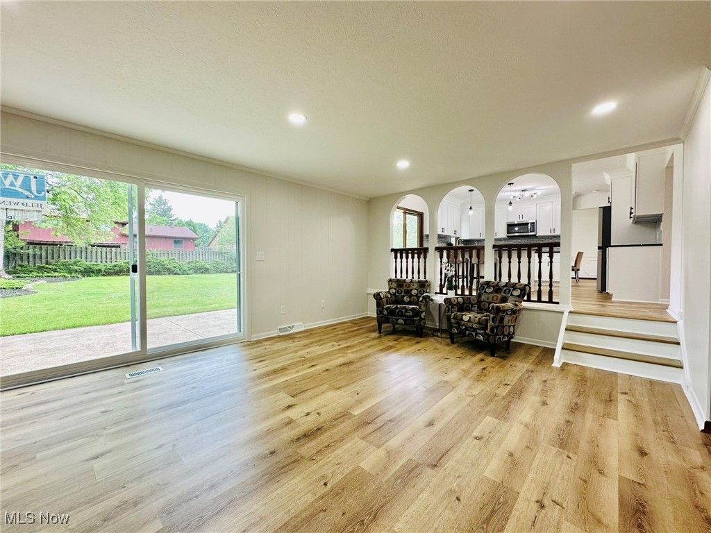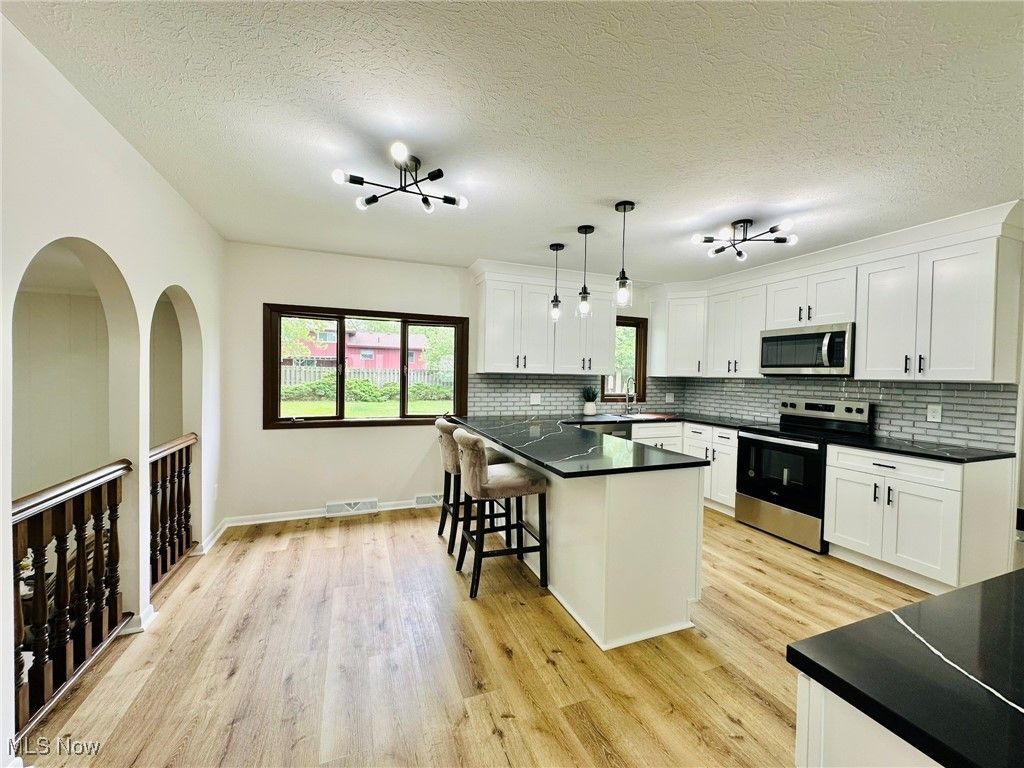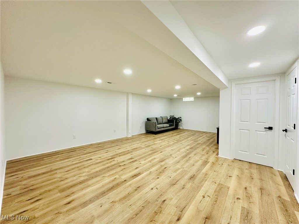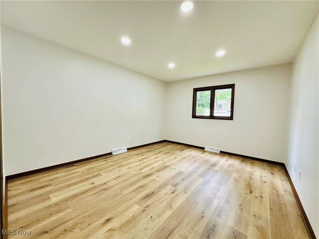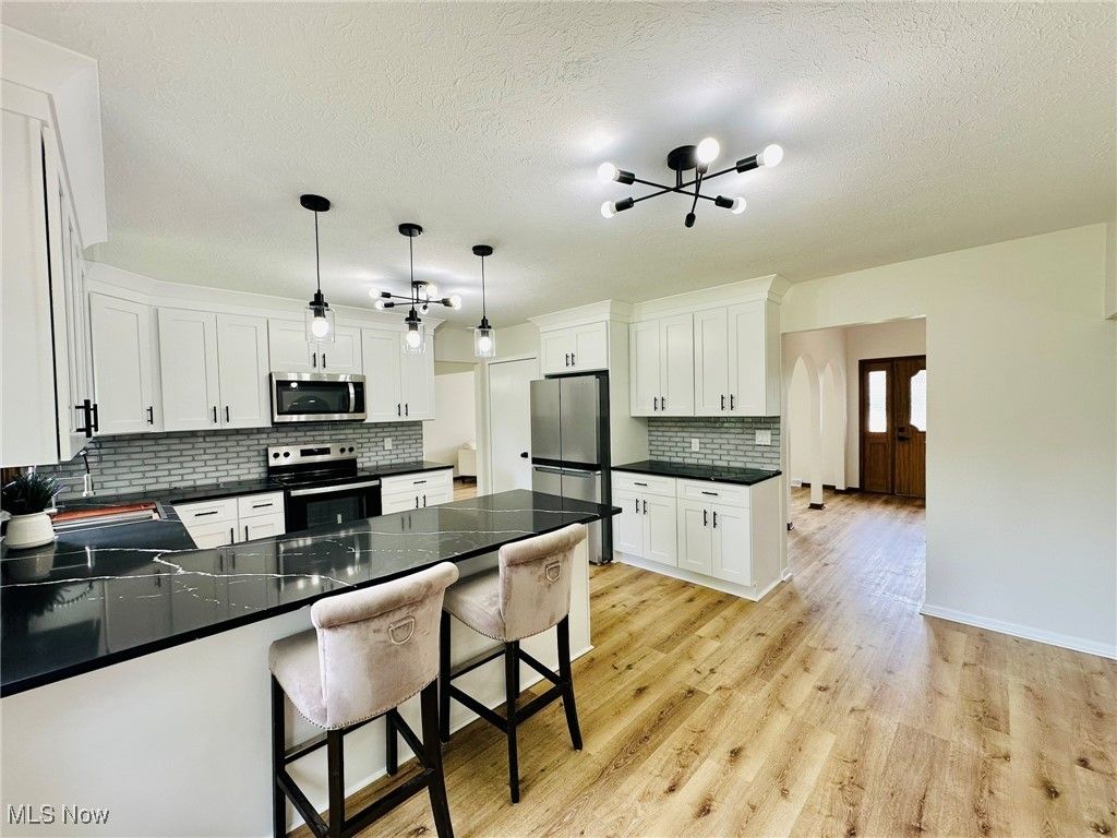 Welcome home to this completely remodeled and move in ready 4 bedroom modern split! Gorgeous living room with vaulted ceilings, bay window and lots of natural light! Modern kitchen features new cabinets and granite countertops, new stainless steel appliances and new vinyl floors. Beautiful dining room with a chandelier. Spacious family room overlooking the backyard, with a fireplace and wet bar. 1st floor bedroom and nicely updated 1/2 bath . Upstairs you will find the owner's suite with vaulted ceilings and a beautifully updated bathroom. Two additional generous sized bedrooms with a shared full bathroom, complete the 2nd floor. Large finished basement with new LVP flooring and beautiful full bathroom with new shower and vanity. Basement has a spacious family/recreation room and an office/guest bedroom. Freshly painted throughout! New LVP flooring throughout! Conveniently located just minutes from Strongsville City Schools, parks, vibrant shopping and dining, and major highways, this home offers the perfect blend of luxury, lifestyle, and location. 1 year APHW warranty included. This is the one you have been waiting for!