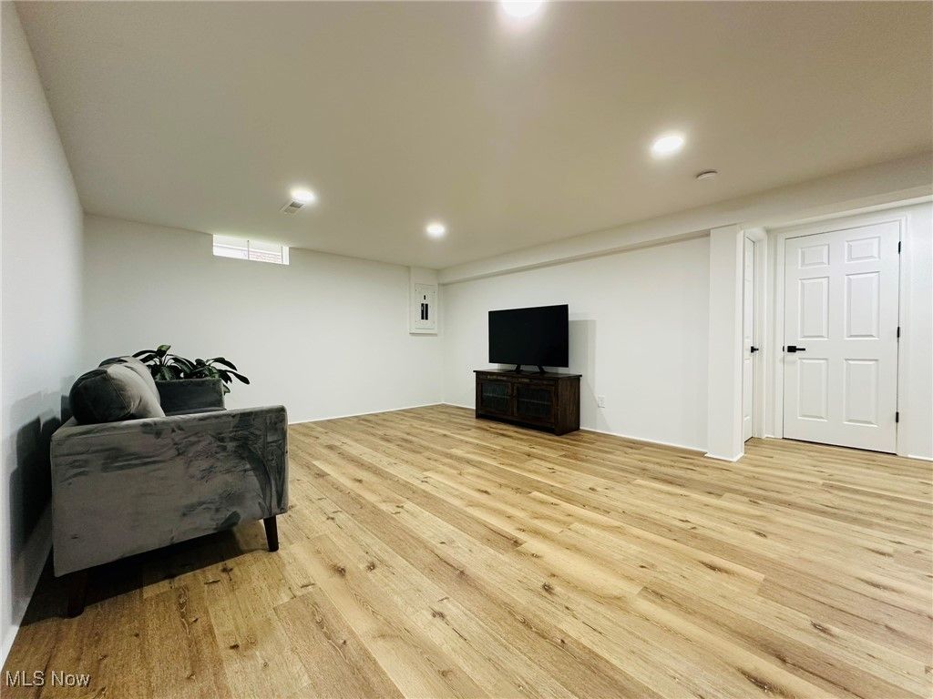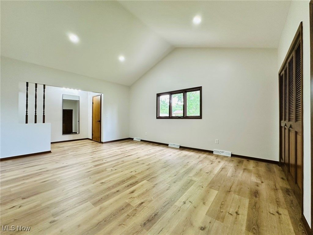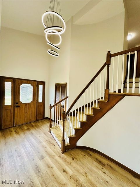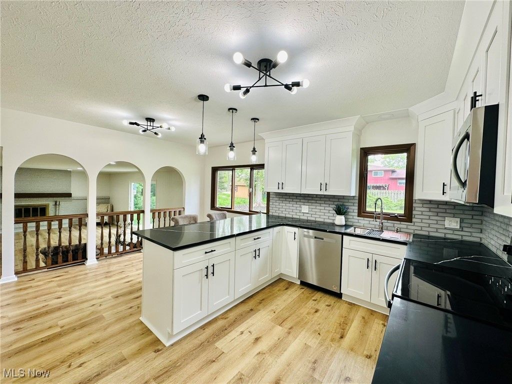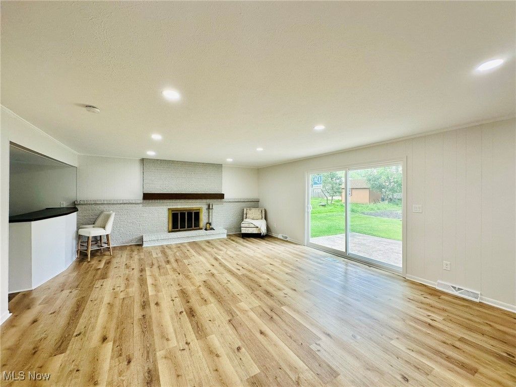 Welcome home to this completely remodeled and move in ready 4 bedroom modern split! Gorgeous living room with vaulted ceilings, bay window and lots of natural light! Modern kitchen features new cabinets and granite countertops, new stainless steel appliances and new vinyl floors. Beautiful dining room with a chandelier. Spacious family room overlooking the backyard, with a fireplace and wet bar. 1st floor bedroom and nicely updated 1/2 bath . Upstairs you will find the owner's suite with vaulted ceilings and a beautifully updated bathroom. Two additional generous sized bedrooms with a shared full bathroom, complete the 2nd floor. Large finished basement with new LVP flooring and beautiful full bathroom with new shower and vanity. Basement has a spacious family/recreation room and an office/guest bedroom. Freshly painted throughout! New LVP flooring throughout! Conveniently located just minutes from Strongsville City Schools, parks, vibrant shopping and dining, and major highways, this home offers the perfect blend of luxury, lifestyle, and location. 1 year APHW warranty included. This is the one you have been waiting for!