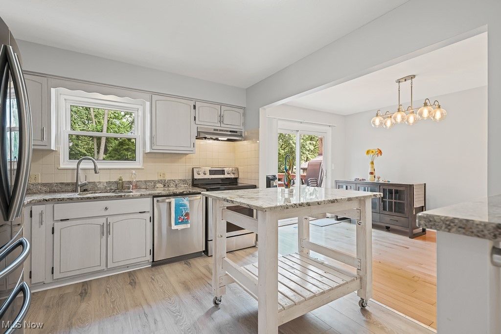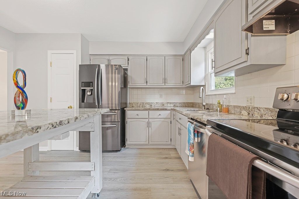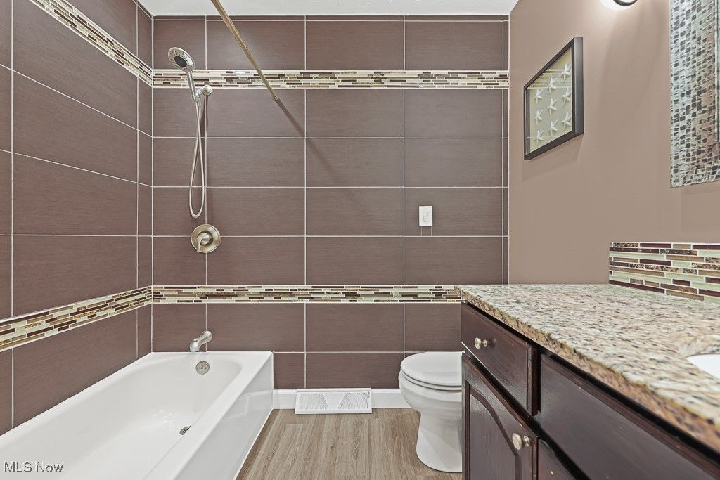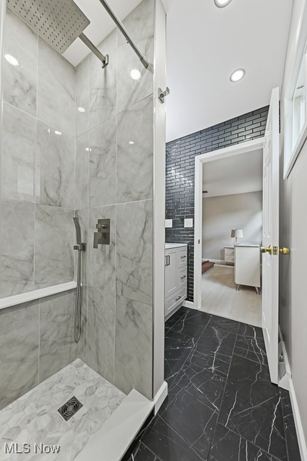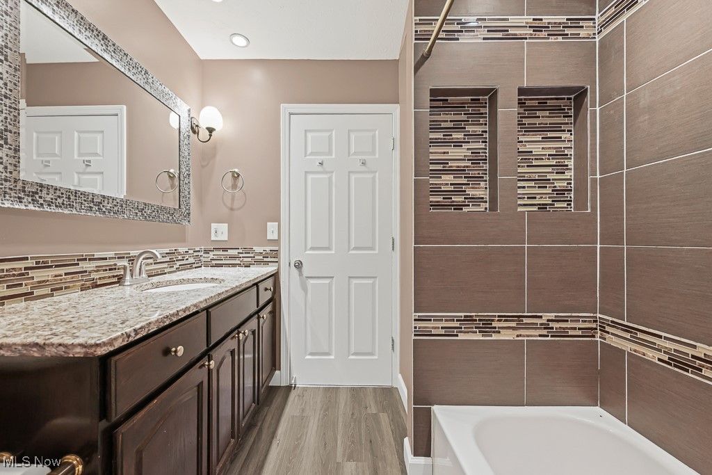 Beautifully updated split-level in the heart of Strongsville! This 3-bedroom, 3 full bath home offers 1,820 sqft of stylish living space and a fully finished lower level. The upper floor features solid hardwood flooring throughout the living and dining areas, plus a renovated kitchen and two updated full baths - including a luxurious new master bath with a custom glass walk-in shower. The lower level boasts tiled floors, a cozy fireplace, and an additional full bath - perfect as a family room or guest suite. Enjoy outdoor living on the updated deck overlooking a fully fenced backyard. Fresh paint, updated flooring, and quality finishes throughout make this home truly move-in ready!