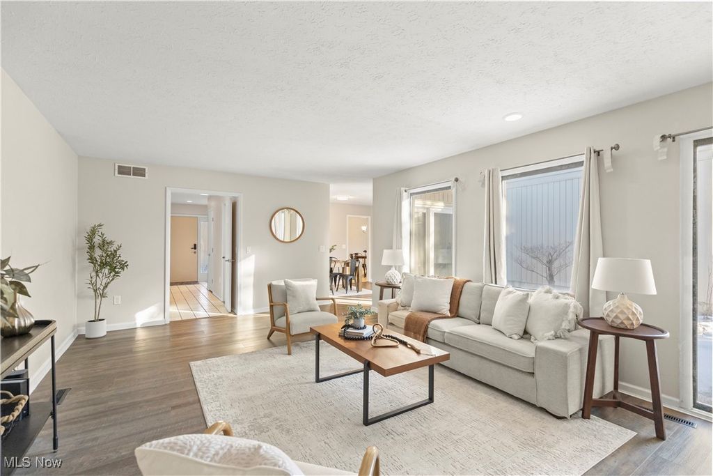 This beautifully renovated 3-bedroom, 2.5-bath ranch condo offers modern comfort in the coveted co moor neighborhood, all with the ease of first floor living. The home features a clean, contemporary feel with newer LVT flooring, fresh paint, new carpeting, upgraded electrical, and stylishly renovated bathrooms throughout. The spacious living room is a true highlight, centered around a wood-burning fireplace that adds warmth and character while still fitting seamlessly into the home's aesthetic. A formal dining room provides an ideal space for hosting, while the eat-in kitchen offers everyday convenience and functionality. From the dining area, a new sliding door leads to a private, enclosed patio - perfect for quiet mornings or outdoor entertaining. Additional features include a 2-car garage and access to a community pool (pool pass is $290/year). Ideally located close to shopping, dining, and all that Strongsville has to offer, including nearby Metroparks, this home blends updated style with space, comfort, and an unbeatable location. HOA is $1600/year (paid in full for 2026) and comes in very handy on snow days and one year home warranty included for peace of mind! Roof is 2017, hot water tank is 2023, furnace serviced 2026 and was installed in 2013.