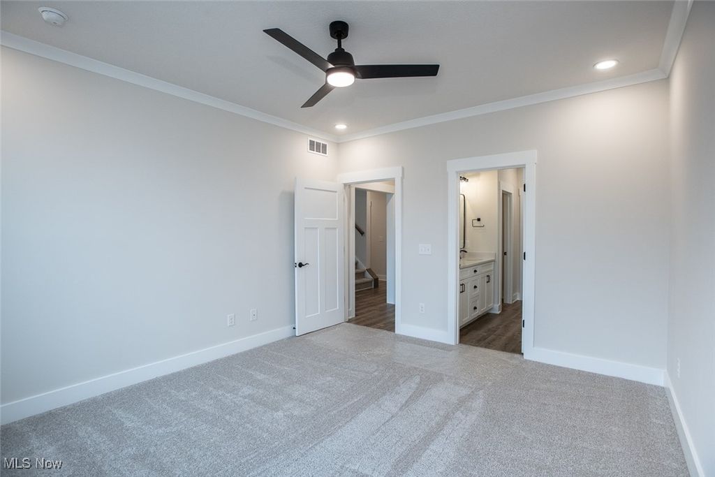 New Year! New Home! 2025 has a suprise waiting for you! This highly sought after Strongsville new construction will have you falling in love at first sight. The spacious front porch is a great place to welcome your guests. Green Quest has perfected this modern and open floor plan ideal for entertaining and functionality. No wasted space here. The entire first floor radiates with natural light. The kitchen boasts white SHAKER cabinets with a middle roll out shelf and soft close hinges, quartz countertops, a large island, & pantry. A large breakfast room has a door leading to the covered back porch. The first floor also boasts a primary bedroom with ensuite, and large walk-in closet. You will also love the home office, first floor laundry, and custom drop zone. The upstairs floor plan offers a large loft that would make a great family room, gaming space, or hang out. There are an additional 3 bedrooms upstairs all with walk-in closets. Green Quest Homes offers standards that most builders consider upgrades such as a textured garage with an insulated garage door and wifi opener, a full basement with rough in for a bath, 95% high efficiency Carrier furnace & high efficiency central air, ceiling fans in the loft and colonial 5 1/4 inch white baseboards. Pay attention to the little details like first floor laundry with a stationary tub. Tired of shoveling snow? This home is part of the Edgebrook Subdivision which means for the small monthly fee of $150 your snow removal, landscaping, and lawn care will be done for you. That also means that the builder will install the lawn and the beds as part of your purchase!