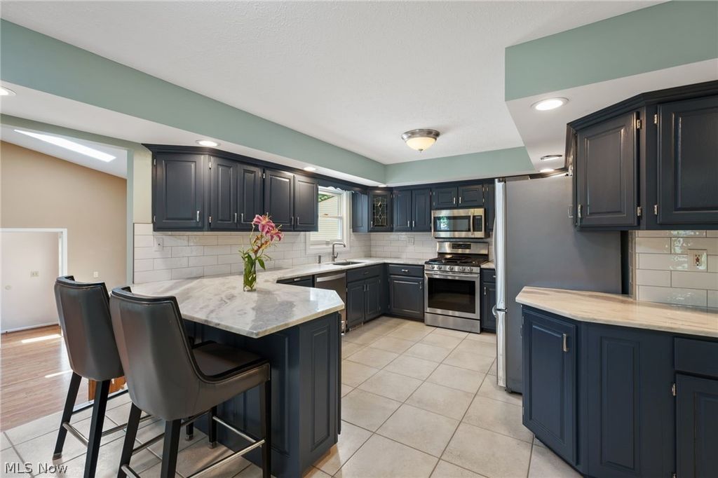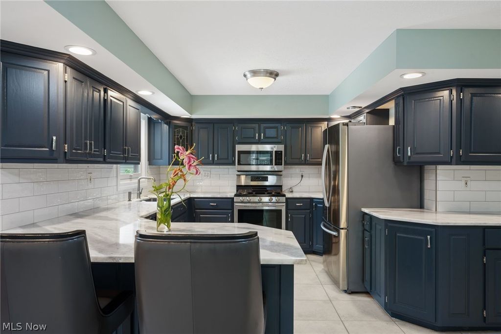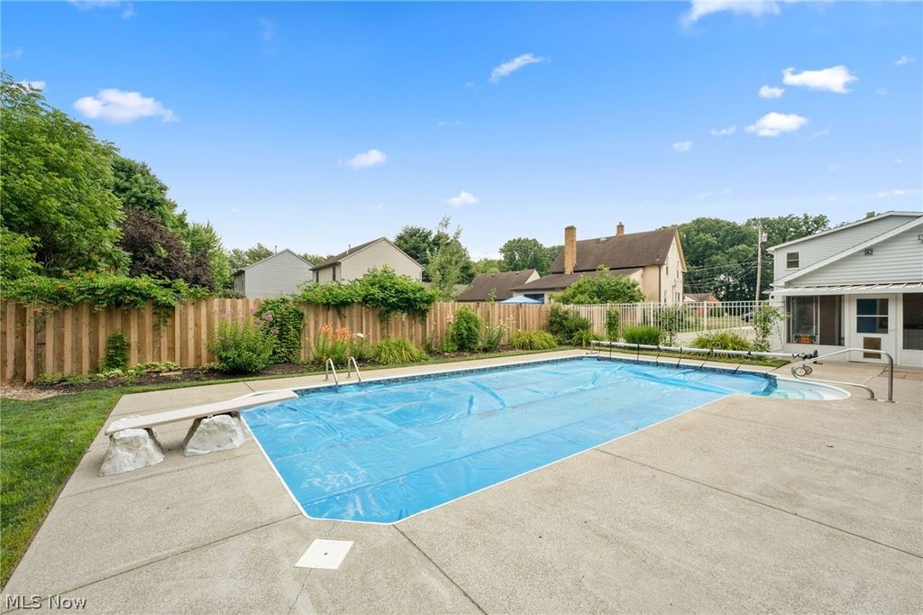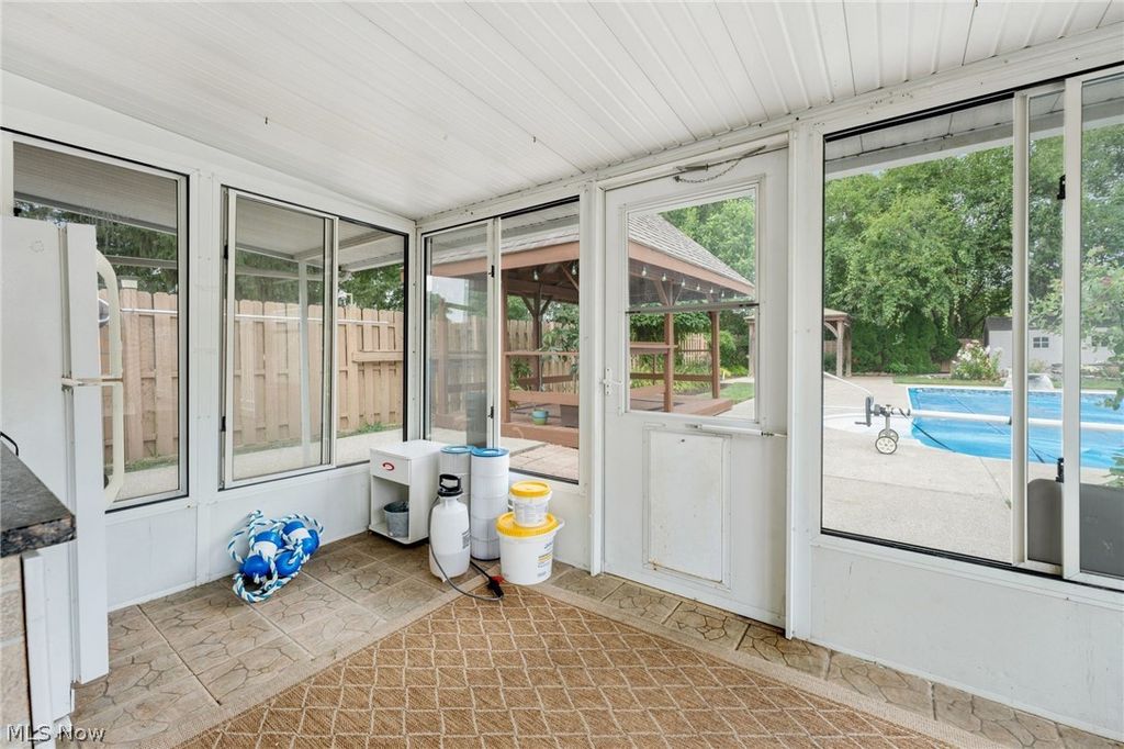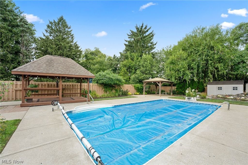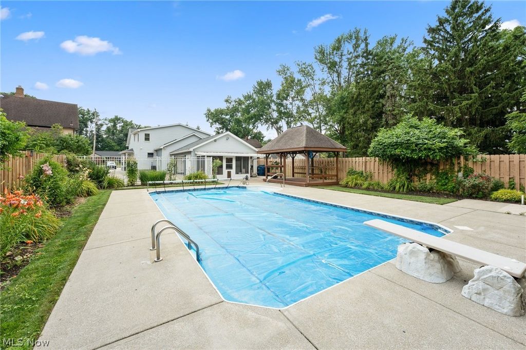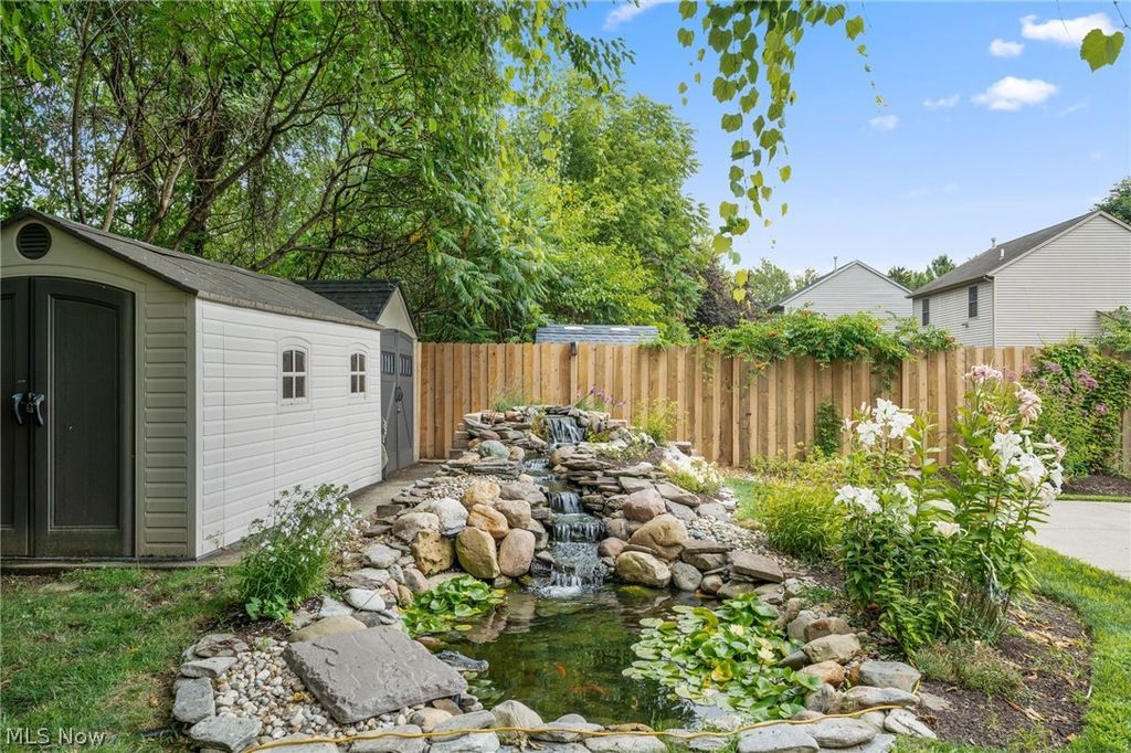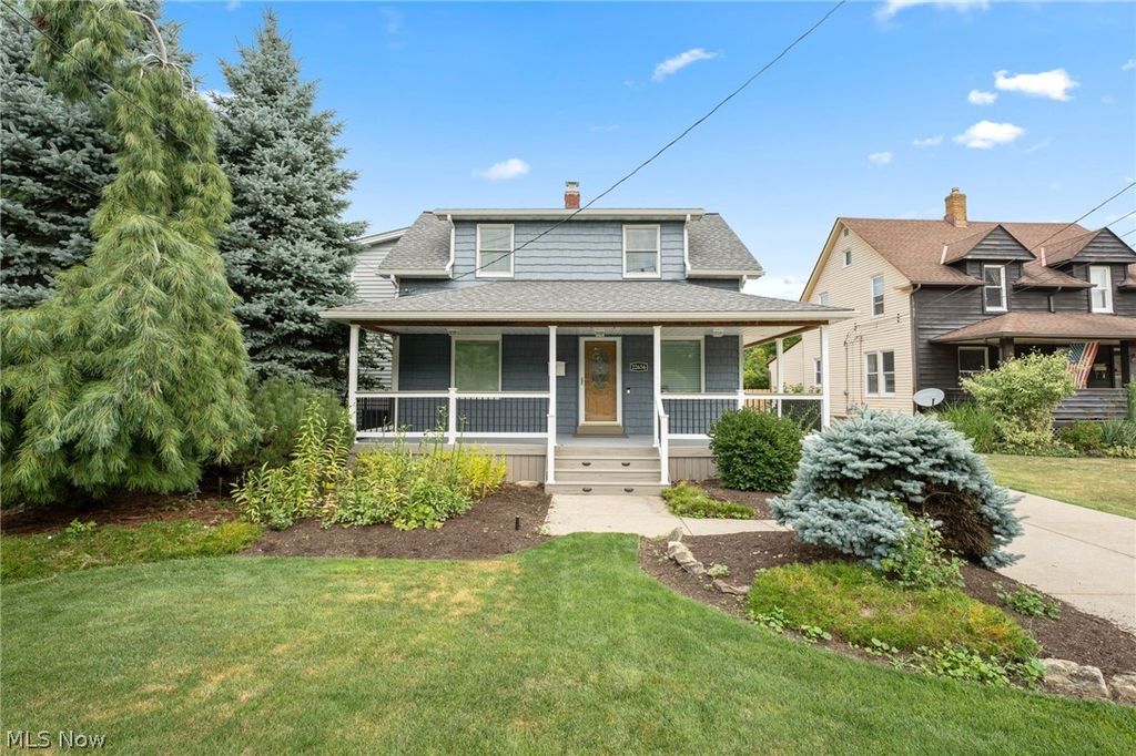 Introducing a truly unique & stunning home located at 22656 Mastick Rd in the heart of Fairview Park. This spectacular property offers 4 bedrooms, 3 full baths, & 2 half baths, providing ample space for comfortable living. The owners have made some thoughtful updates throughout the years some of which include a newer A/C & furnace (2019), hot water tank (2010), roof (2017), & windows (2019). Step inside & be greeted by the stylish hardwood floors that flow seamlessly throughout the living room & dining room, giving it a warm & inviting ambiance. The vaulted ceilings in the family room feature skylight windows & a beautiful gas fireplace. The fully remodeled kitchen is a chef's dream, boasting beautiful countertops, a subway tile backsplash, & stainless steel appliances. The oversized dining room that connects to the kitchen is perfect for those with large families or those who like to entertain. Upstairs, the sizable master suite offers a serene retreat w/ a walk-in closet, private bathroom w/ jetted jacuzzi tub, dual sink vanity, & walk-in shower. The 2 remaining upstairs bedrooms share the 2nd full bathroom w/ double vanity & tub/shower combo with glass doors. But that's not all! The fully finished basement adds even more entertaining space & includes the 4th bedroom & 3rd full bathroom with shower. Next, step outside to the backyard oasis, where you'll find a gazebo, tiki bar, a water feature with a koi pond, & a saltwater pool. Spend your summer days lounging by the pool or enjoying outdoor meals in the gazebo. This property truly has it all, offering the perfect balance of indoor & outdoor living. The 3-season room is an added bonus, providing extra space that can be used for sitting & enjoying the rain while protected. And for all your storage needs there are 2 sheds that are conveniently located on the property. This property presents an incredible opportunity to own a truly special home in a prime location. Don't miss out-schedule your private viewing today!