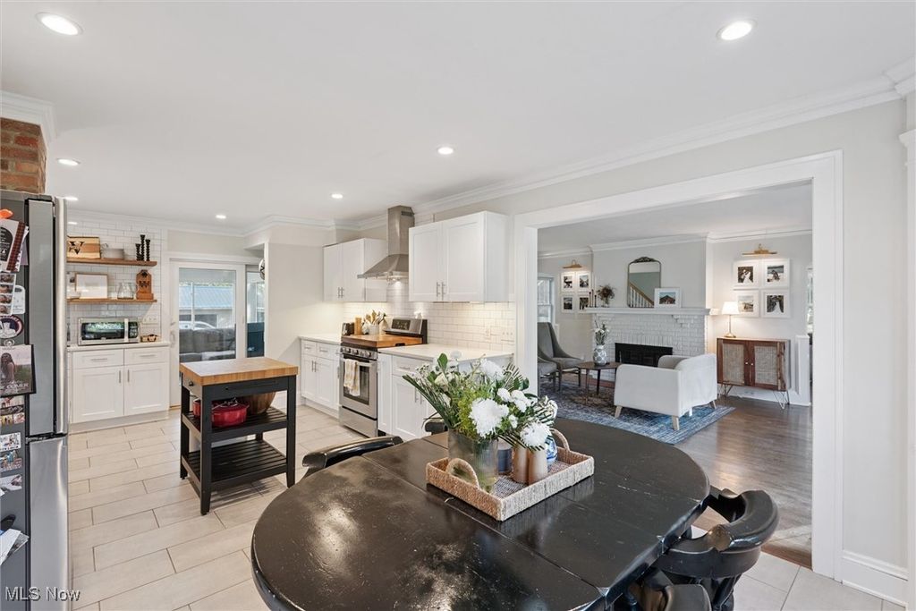 Welcome to 23052 Mastick Rd in North Olmsted - a modern farmhouse that perfectly blends timeless character and charm with thoughtful updates. Nestled on 1.5 private acres on a very desirable street this 3-bedroom, 2-bath home is filled with charm, natural light, and inviting spaces. Step into the heart of the home: a gorgeous, open kitchen featuring crisp white cabinetry, granite countertops, stainless steel appliances, and an island - ideal for everyday living or entertaining. You will delight in the immense amount of cabinets and counterspace! Brick accents and open shelving add warmth and style to the space, while sliding doors lead to a bright three-seasons room with views of the spacious backyard. The main level flows seamlessly into the living room, where you will find built-ins, a painted brick fireplace, and refinished hardwood floors create cozy sophistication. Those beautiful hardwood floors flow into the family room- wrapped in windows providing even more space to gather. Upstairs you'll find three bedrooms all featuring refreshed hardwood floors, an updated full bath with double sinks, and the convenience of a second-floor laundry. A large walk-up attic offers abundant storage space. The finished basement adds versatility with another full bath, while updated flooring and windows throughout the home ensure comfort and efficiency. Recent upgrades include a new refrigerator, washer, and dryer and many other updates made in the last 6 years. Outside, enjoy your expansive backyard complete with privacy fencing, a paver patio, and a 2-car garage and barn featuring a heated workshop. All this with easy access to the Metroparks right across the street, highways, downtown, shopping, dining, and schools - giving you city convenience with the peace of a private, park-like setting. This modern farmhouse is ready to welcome its next chapter - schedule your showing today!