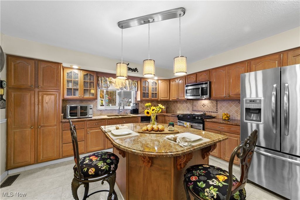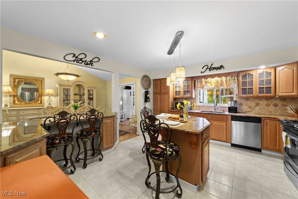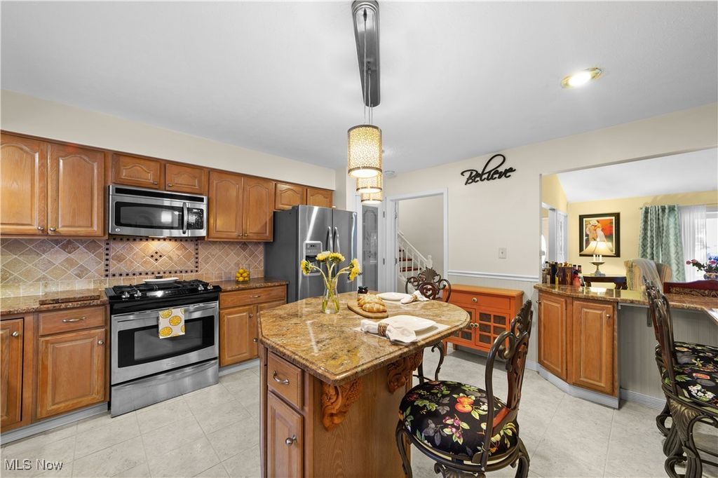 Welcome Home to this well-maintained and delightfully spacious split-level home tucked away in North Olmsted s Sandy Ridge neighborhood. Offering 2,748 sq.ft., the thoughtful open floorplan of this 4 bed & 2.5 bath home make it the perfect place to grow, entertain and enjoy a balance of indoor and outdoor living. The covered front porch entrance leads you into the foyer and open main floor, complete with vaulted ceilings and easy conversation between the living rm, formal dining rm and eat-in kitchen. The large eat-in kitchen has loads of cabinets and granite countertops throughout, gas AND electric cooking options, and SS appliances. You will love to start & end the day in the tranquility of the sunroom that overlooks the secluded backyard! Benefit from extra privacy with all sleeping spaces located upstairs. Along with a full bath, the primary suite features a convenient adjoining door to the neighboring bedroom- perfect for nursery access or a quiet retreat spot. In the lower level, easily create multiple zones for work and play within the large family room, complete with cozy stone fireplace and plenty of natural light. From the family room, access the serene backyard and covered patio- a true gardener s delight and perfect for outdoor gatherings. Seller is happy to include the gardening shed to convey to the new owner. Completing the lower level is a convenient 1/2 bath as well as the utility, storage and laundry room, and mudroom area that bridge to the oversized garage. Outfitted for a tinkerer of any kind, the garage is oversized (22W & 26D), has a newly painted floor and ventless heat option for the Ohio winters. Updated electrical box (2021), AC ~11 yrs, furnace (2018) and hot water tank (2020). Roof is approx. 10-15 yrs. Generous 3-lane driveway is ~10-15 yrs old and in beautiful condition. No HOA! Ring doorbell and camera will not convey. Seller is including one-year HSA Home warranty for peace of mind. This home is bursting with warmth and personality!