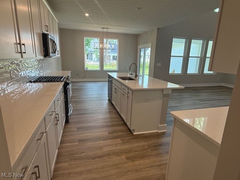 Discover the Libby, a stunning townhome in Westlake sought after Brentwood community designed to live like a spacious single family home. Tucked away in a quiet middle unit, this home features a dramatic two story family room, flooded with natural light an absolute showstopper! The open concept main level includes luxury vinyl plank flooring, a chef inspired kitchen with quartz countertops, tile backsplash, a large island and stainless steel appliances. Enjoy seamless indoor-outdoor living with a covered rear porch perfect for relaxing or entertaining. Upstairs the expansive owners' suite offers a private retreat with a walk in closet and owners bath with tile shower. A convenient second story laundry room, 2 mores bedrooms and secondary bath complete the upper level. The full unfinished basement, 1260 square feet, offers endless potential whether you are dreaming of a home gym, media room or added living space. Brentwood offers maintenance free living so you can spend more time enjoying everything Westlake has to offer from Crocker Park to the nearby metro parks. Quick access to I-90 or I480. With Drees Homes' award-winning plans and designs. Ready to see it for yourself? Schedule your private tour today and experience why the Libby floor plan is redefining townhome living in???????????????????????????????? Cleveland.