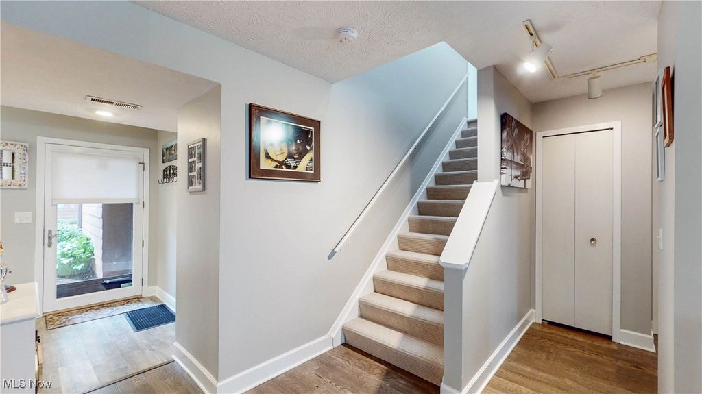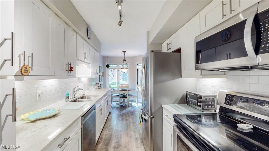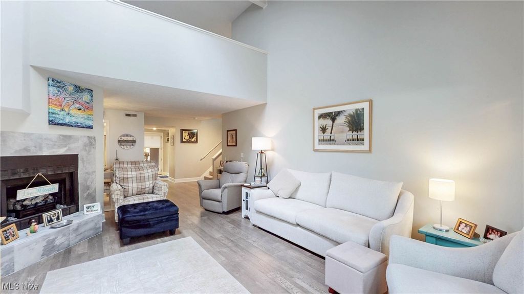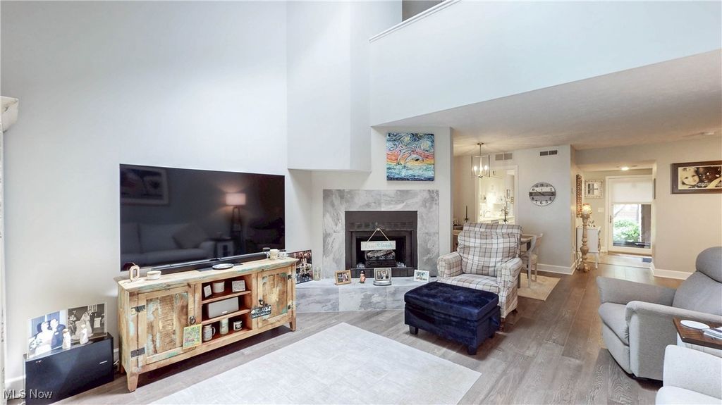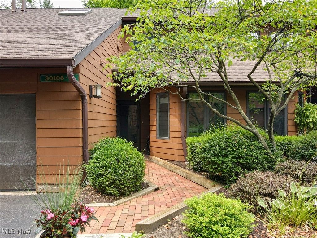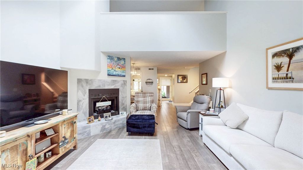 Discover this beautifully updated townhome nestled in the tranquil setting of Brenton Woods. Featuring a modern floor plan with cathedral ceilings and a skylight, the space is filled with natural light and contemporary charm. The first-floor master suite offers new custom-made closets, adding to the already generous storage throughout. A remodeled full bath enhances convenience and style. The updated kitchen includes an eat-in area, newer appliances, modern finishes, and flows into a formal dining room - perfect for entertaining. Upstairs, you'll find a second private bedroom with its own remodeled full bath, complete with new flooring, countertops, and fixtures. Additional upgrades include fresh paint, new lighting and fan fixtures, brand-new carpeting, and newer luxury vinyl plank and wood plank flooring throughout. Enjoy the convenience of a remodeled first-floor laundry room, a brand-new A/C condenser, and an attached 1-car garage. Just steps from Bradley Woods and minutes to Crocker Park, highways, and the recreation center - this home blends location, comfort, and style. HOA handles all exterior for carefree living. **open house canceled**