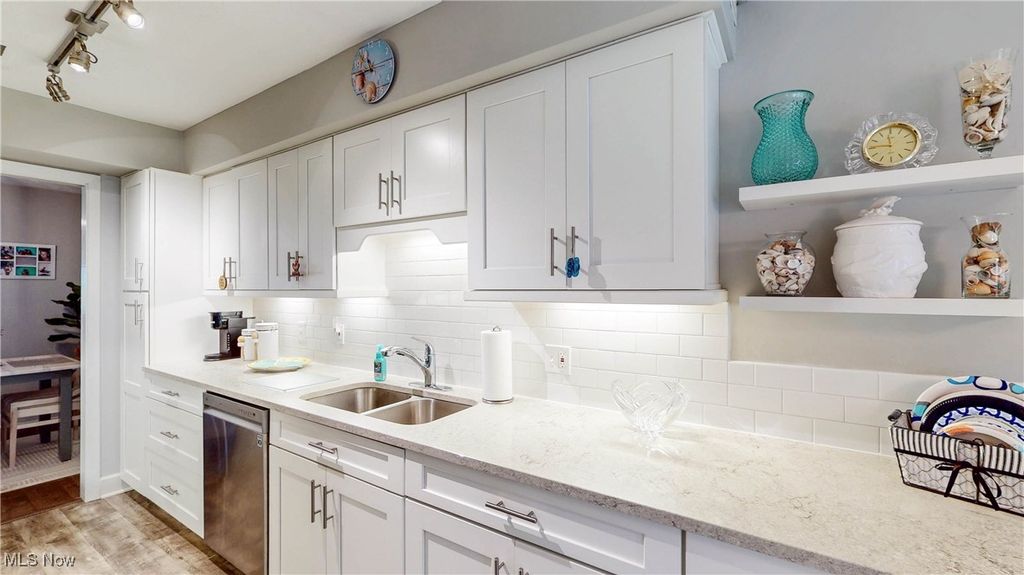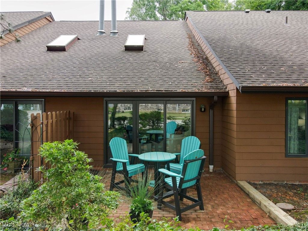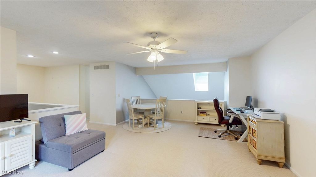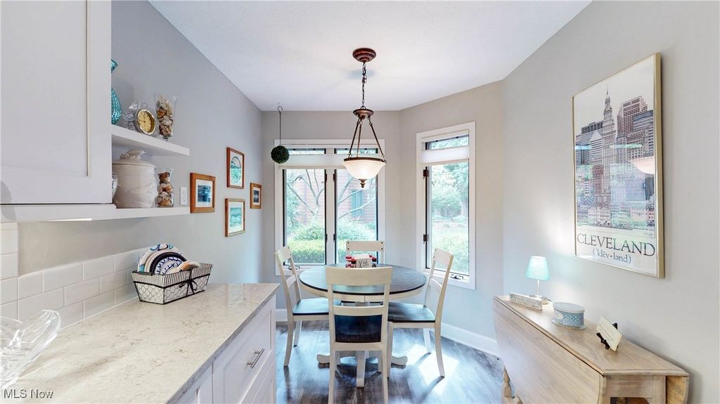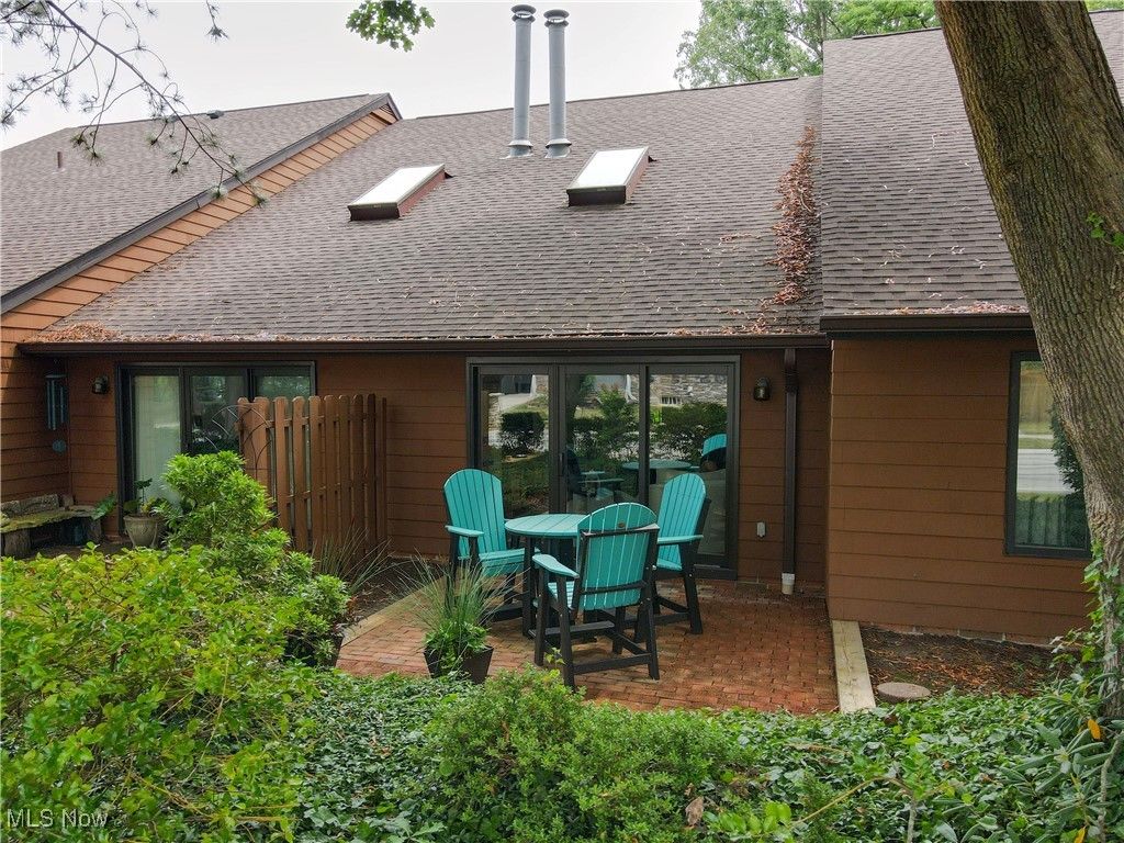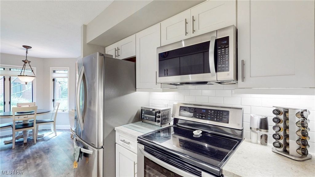 Discover this beautifully updated townhome nestled in the tranquil setting of Brenton Woods. Featuring a modern floor plan with cathedral ceilings and a skylight, the space is filled with natural light and contemporary charm. The first-floor master suite offers new custom-made closets, adding to the already generous storage throughout. A remodeled full bath enhances convenience and style. The updated kitchen includes an eat-in area, newer appliances, modern finishes, and flows into a formal dining room - perfect for entertaining. Upstairs, you'll find a second private bedroom with its own remodeled full bath, complete with new flooring, countertops, and fixtures. Additional upgrades include fresh paint, new lighting and fan fixtures, brand-new carpeting, and newer luxury vinyl plank and wood plank flooring throughout. Enjoy the convenience of a remodeled first-floor laundry room, a brand-new A/C condenser, and an attached 1-car garage. Just steps from Bradley Woods and minutes to Crocker Park, highways, and the recreation center - this home blends location, comfort, and style. HOA handles all exterior for carefree living. **open house canceled**