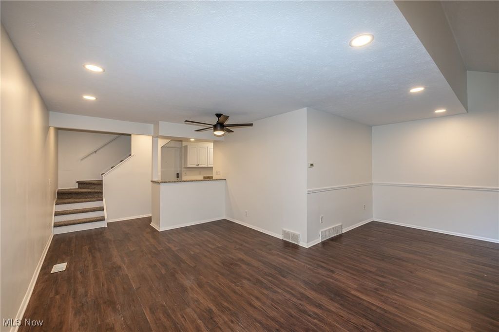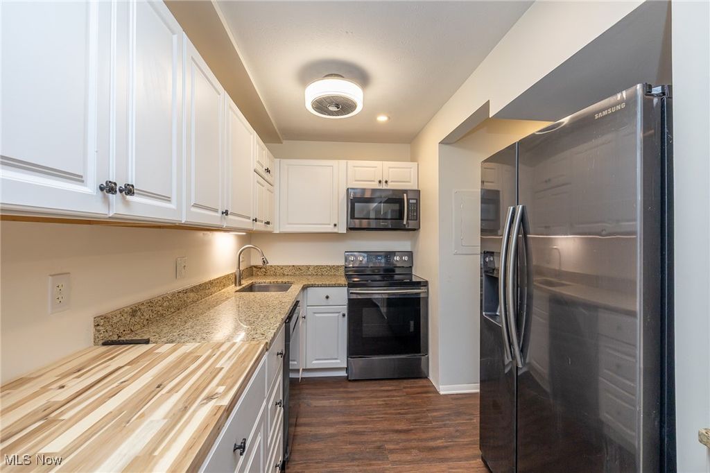 Absolutely Beautiful and Move in Ready Townhouse Style Condo Located in the Smugglers Cove Community of Avon Lake. This condo has been completed gutted on the 1st floor and remodeled w/ new flooring throughout. Kitchen has been updated with pristine white cabinetry w/ pull outs, granite countertops, sink, pantry, under cabinet lighting, & breakfast bar area w/all appliances included. Kitchen is open to Dining/ Living Room areas, where you have large slider w/ access to Your Own 20 x 10 Enclosed Private Patio. It's also one of the Largest Units and One of the Few with (3) Bedrooms and all generously sized. Updated Ceiling Fans throughout w/ some having remotes. Stackable washer/ dryer w/ laundry sink off kitchen and flows to 1/2 bath for 1st floor convenience. New Paint, laminate floor and carpeted stairway. Upstairs you will find a remodeled bathroom, 3 comfortable & spacious bedrooms w/ double walk in closets in Master bedroom, walk in closet & storage in 2nd bedroom, & 3rd bedroom w/ ample closet/storage space. Access to your 1 Car (shared) garage with 3 storage cabinets. Improvements also include furnace 2019, AC 2021, Gas hot water tank 2022. Monthly Fee includes heat, water/sewer, landscaping, snow & trash removal , so you only pay for electric/ cable/ internet. Quiet and secluded & at the far end of the complex. Smugglers Cove has its Own Private Pool (heated), Club House (Rental option) and Playground. You are only one block to the Lake, Beach, Boat launch, Miller Park and Pier. Do nothing, but pack your bags and move right in, just in time for the holidays! This one won't last!!
