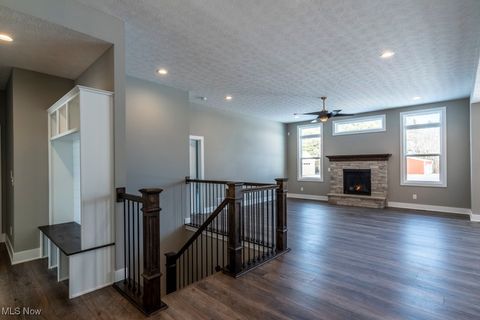 Beautiful 3-bedroom Ranch on almost 1/2 acre homesite with full basement and 3-car side-load garage under construction in prime Eastern Avon location less than 3 miles from Crocker Park! This well-designed plan offers 1-floor living with an open and airy feel. The kitchen boasts an oversized island, soft-close cabinetry, and a spacious walk-in pantry. The casual dining area opens onto a covered porch, and the adjacent great room features a vaulted ceiling and cozy gas fireplace, perfect for cold winter evenings. The primary suite welcomes owners with double door entry, vaulted ceiling, walk-in closet, and an ensuite bath with tile walk-in shower. Convenience abounds with a 1/2 bath and laundry located right off the 3-car side entry garage. A full basement is roughed in for a full bath. This quiet lot in a premier location makes this the perfect home for those looking to right-size without the restrictions that come with a low-maintenance community. Home is in-process and pictures are for illustrative purposes only.