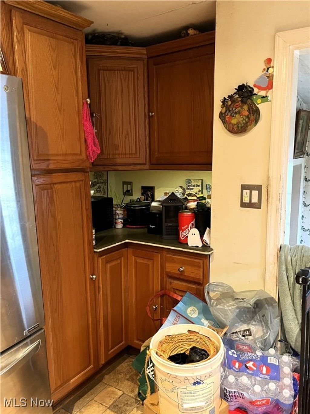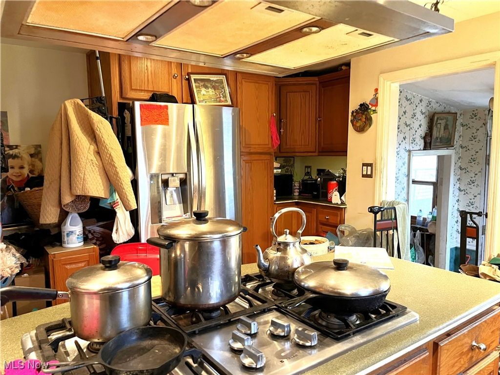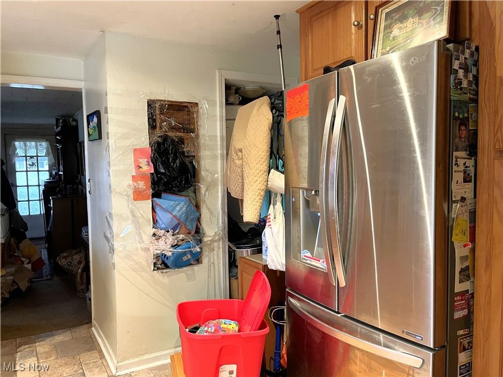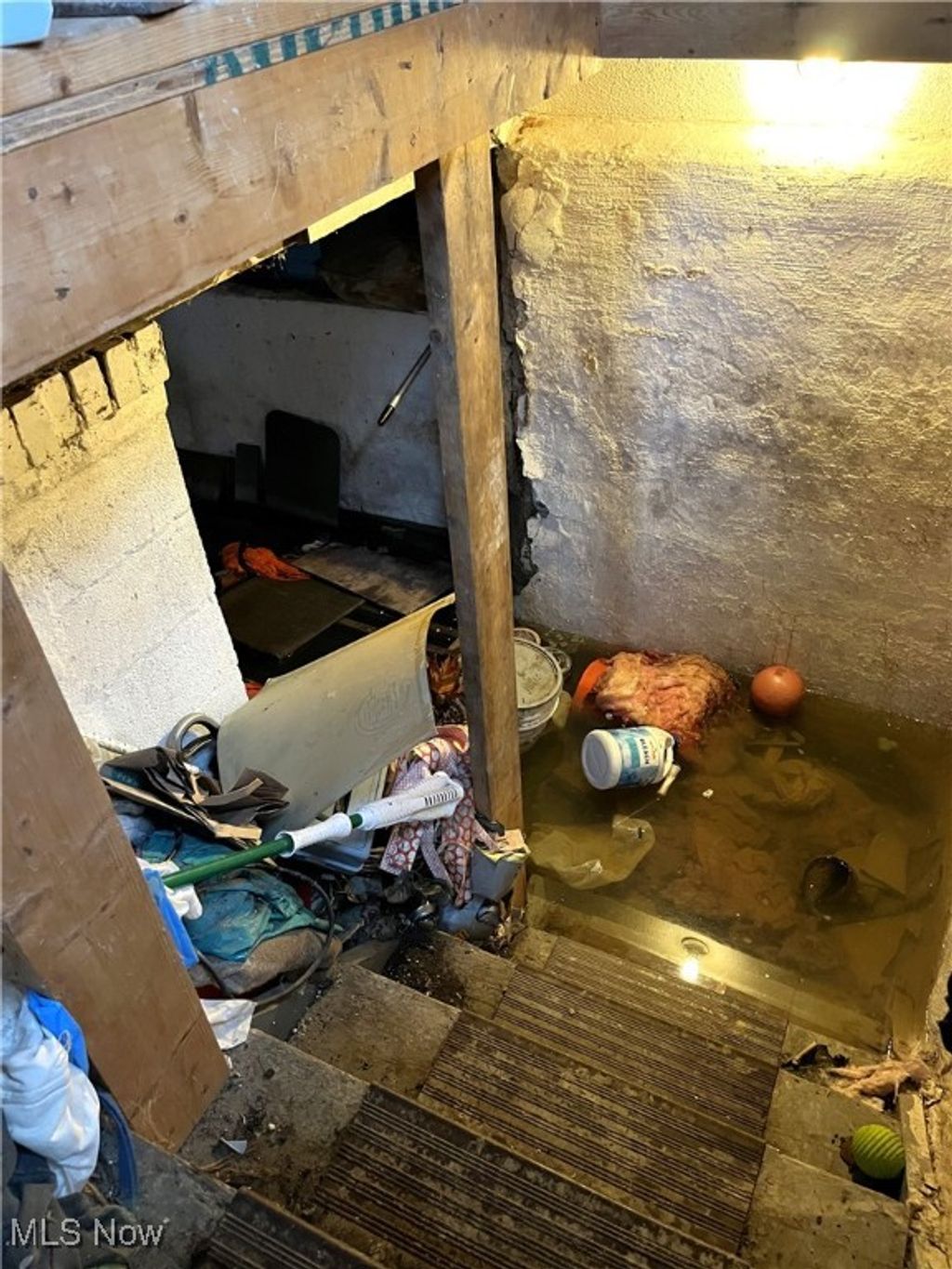 Opportunity knocks for a seasoned home renovator. 1920s bungalow and oversized 2-car garage on a 185' deep lot. Updates include a newer expanded kitchen, first floor laundry and spacious first floor full bath. The kitchen features a stainless steel refrigerator, wall oven and range hood along with Corian-type counters & abundant cabinet space. Stacking washer/dryer off the kitchen. The 1st floor bath includes a wide vanity, shower/tub combo, ceramic tile floor and linen storage. 2 bedrooms and another full bath are on the 2nd floor. The extra-deep garage includes a potential loft area. While there are already a number of updates to the property and its potential is great, there are items that will require immediate attention, including basement flooding due to a frozen/split water pipe, restoration of water service at the street and removal of fair amount of debris in the house & garage. Property is offered strictly as-is. Due to the conditions described only cash offers can be considered.