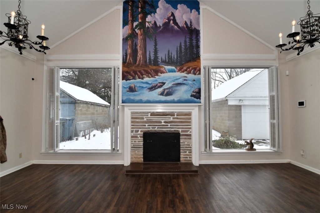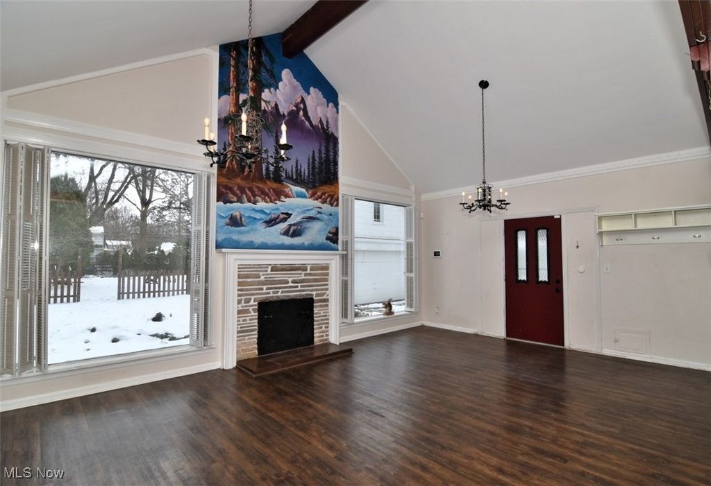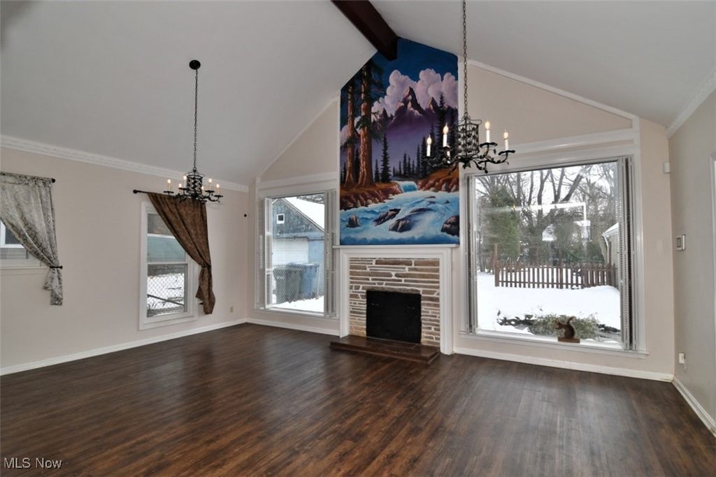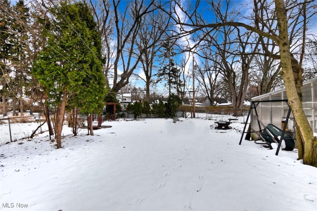 Welcome to 4111 W. 220th St. in Fairview Park an architecturally rich 4 Bed/1.5Bath home nestled behind beautiful mature trees, lush landscaping, and a charming front porch. Thoughtful exterior details, stone accents, and gridded vinyl windows create an inviting presence from the street. A long concrete driveway leads to a spacious two-car garage with electric, storage cabinets, a loft above, and an attached greenhouse. The fully fenced backyard is a true sanctuary with multiple ponds, a small footbridge, extensive landscaping, firepit area, and generous green space. A grand stone side entry brings you into the showstopping rear addition.. an airy, light-filled great room with vaulted cathedral ceilings, a striking stone fireplace, mural centerpiece, and a full wall of oversized windows. A cozy nook offers space for a family room, home office, or flex area, plus a large system-organized closet currently used as a pantry. The galley kitchen has high ceilings and opens to the stunning formal dining room, complete with hardwood floors and a beautiful brick fireplace. The front of the home features an impressive foyer with arched architectural details, curved ceilings, built-ins, artistic glass shutters, and a modern Sputnik chandelier. A study/bedroom off the foyer includes a closet and custom shutters. An updated half bath showcases a dramatic vessel sink and elegant lighting. Additional first-floor bedroom offers a deep closet and designer wallpaper. Upstairs, a full bath features an oversized vanity, expansive footprint, tile-surround tub/shower, and a large linen closet. A huge, clean crawlspace provides exceptional storage or potential finishing options. Basement waterproofed in 2023; updated electrical; 2020 hot water tank. BRAND NEW roof (2022). A truly unique, character-filled property offering space, charm, and endless possibilities. Enjoy our attached video tour and book your exclusive showing today!