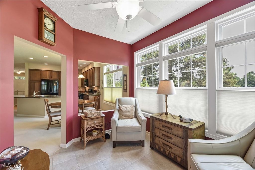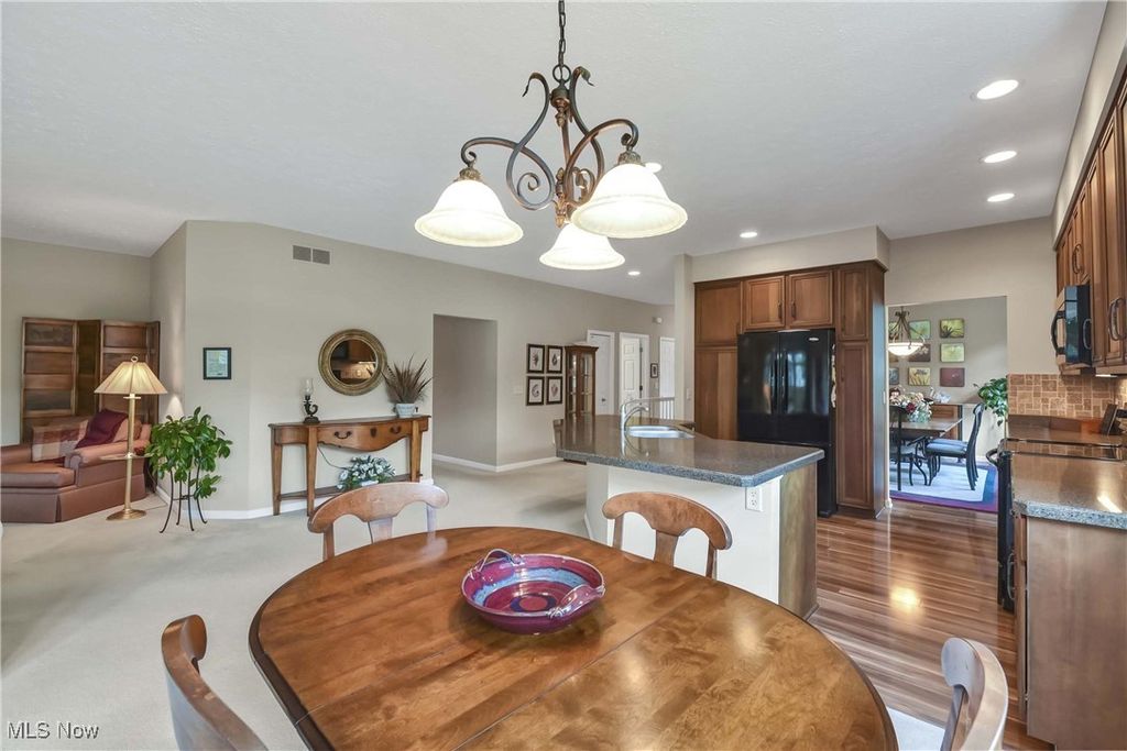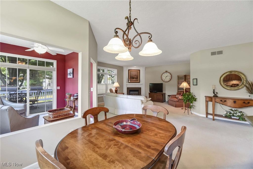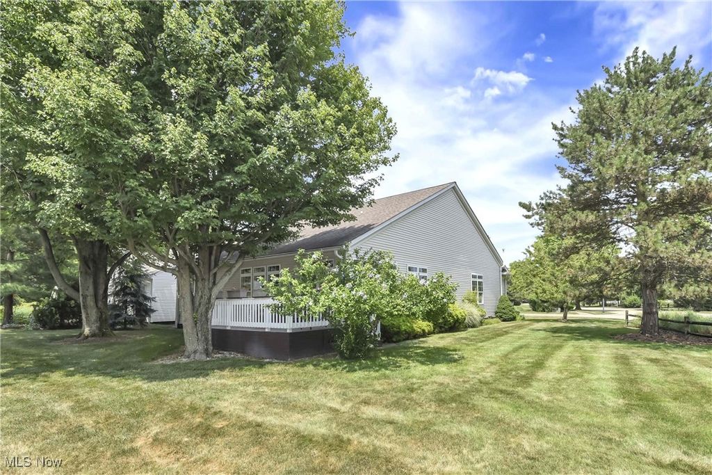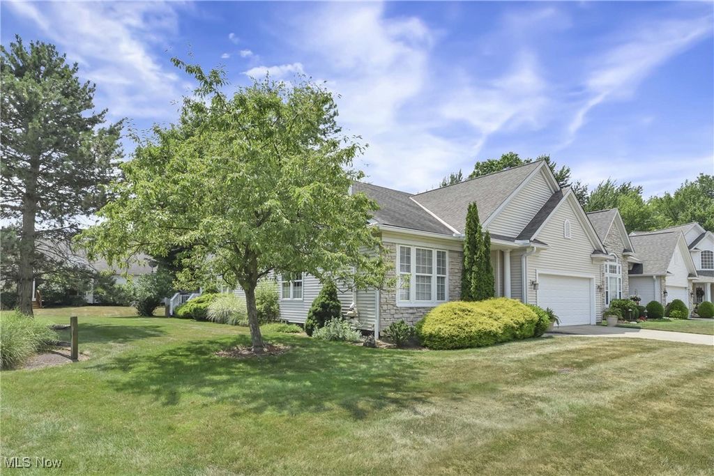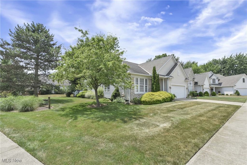 Prepare to be moved! Welcome to 566 Brennans Court, Avon Lake, OH 44012 - a beautiful one-story end-unit ranch offering a thoughtfully designed living space in a quiet and desirable neighborhood. You're initially greeted by a welcoming foyer. Just to your left is the first bedroom, ideal for guests, an office, or a cozy den. To your right is the dedicated laundry room, complete with washer and dryer, upper cabinets for storage, a utility sink, and a hanging rack - making laundry day a breeze. Moving forward, you'll find an intimate, well-lit dining room that sets the perfect scene for family meals or holiday gatherings. The spacious kitchen opens effortlessly into the living room and an additional seating area, showcasing rich wood-stained cabinetry, striking countertops, a modern backsplash, and a central island that provides ample prep space along with the option for extra seating. All kitchen appliances are included, making this home truly move-in ready. The living room is warm and inviting, anchored by a beautiful central fireplace that adds both charm and comfort. Just off the dining area is a stunning, naturally lit sitting room - perfect for reading or taking in serene views of the outdoors. Toward the back of the home are two additional bedrooms, including a spacious primary suite. This private retreat features a large walk-in closet and a generous ensuite bathroom. The second full bathroom is located conveniently for use by guests and the other bedrooms. The unfinished basement offers incredible potential for future expansion, whether you envision a home theater, workout room, workshop, or just extra storage. Outside, the deck provides a peaceful spot to enjoy the fresh air and unwind in your own backyard oasis. Completing the home is an attached two-car garage, offering ample space for vehicles, tools, and storage. Located close to shopping, dining, parks, and Lake Erie. This is a home you won't want to miss - schedule your private showing today.