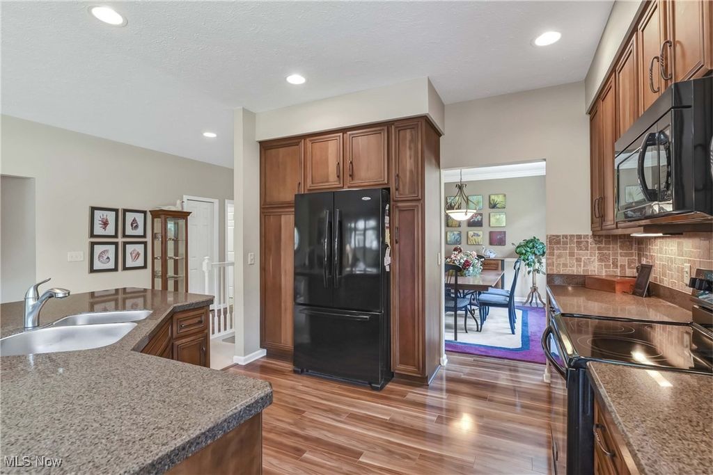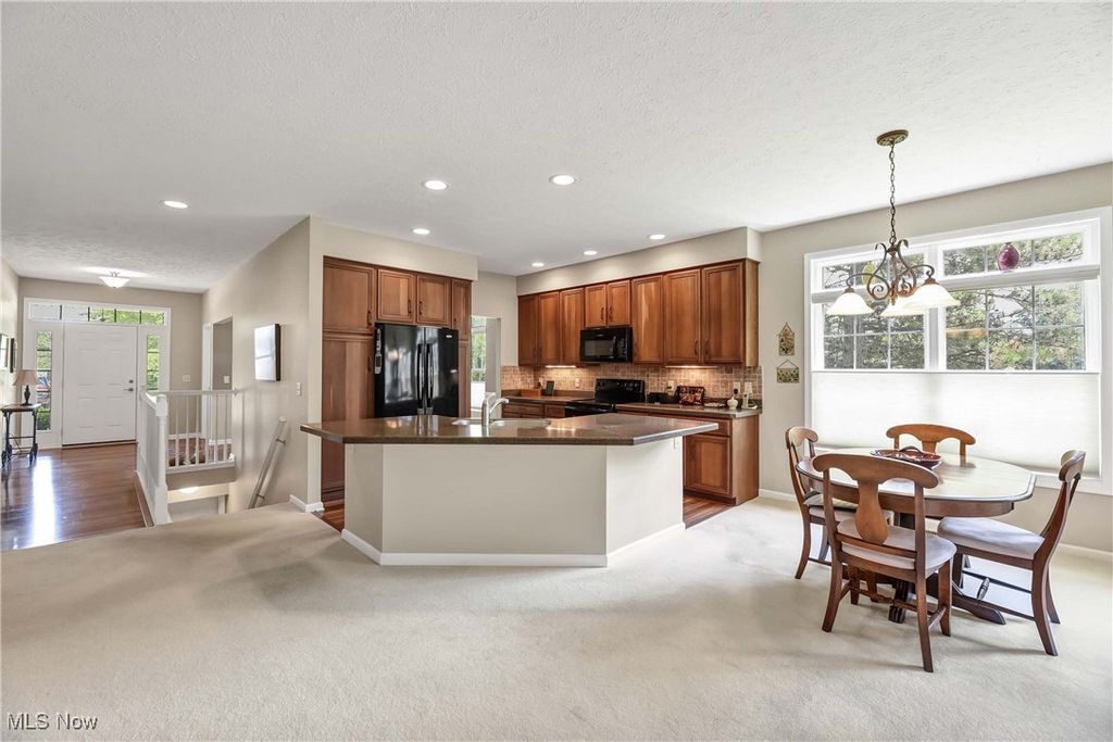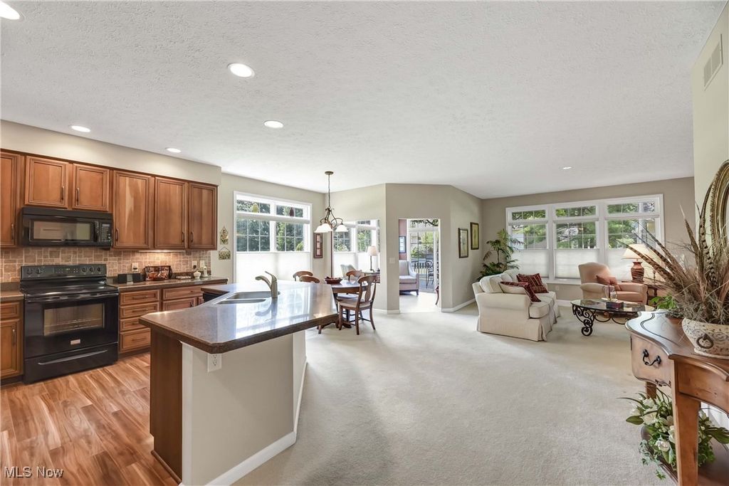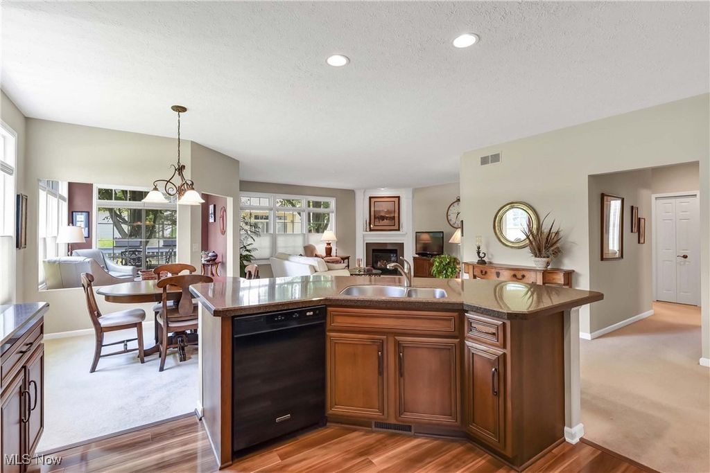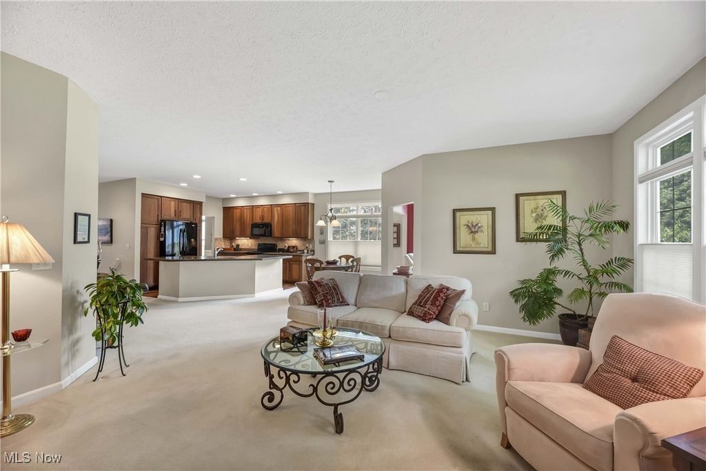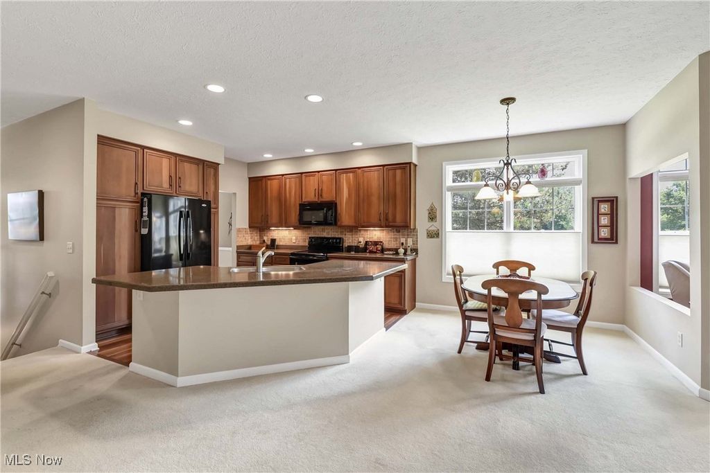 Prepare to be moved! Welcome to 566 Brennans Court, Avon Lake, OH 44012 - a beautiful one-story end-unit ranch offering a thoughtfully designed living space in a quiet and desirable neighborhood. You're initially greeted by a welcoming foyer. Just to your left is the first bedroom, ideal for guests, an office, or a cozy den. To your right is the dedicated laundry room, complete with washer and dryer, upper cabinets for storage, a utility sink, and a hanging rack - making laundry day a breeze. Moving forward, you'll find an intimate, well-lit dining room that sets the perfect scene for family meals or holiday gatherings. The spacious kitchen opens effortlessly into the living room and an additional seating area, showcasing rich wood-stained cabinetry, striking countertops, a modern backsplash, and a central island that provides ample prep space along with the option for extra seating. All kitchen appliances are included, making this home truly move-in ready. The living room is warm and inviting, anchored by a beautiful central fireplace that adds both charm and comfort. Just off the dining area is a stunning, naturally lit sitting room - perfect for reading or taking in serene views of the outdoors. Toward the back of the home are two additional bedrooms, including a spacious primary suite. This private retreat features a large walk-in closet and a generous ensuite bathroom. The second full bathroom is located conveniently for use by guests and the other bedrooms. The unfinished basement offers incredible potential for future expansion, whether you envision a home theater, workout room, workshop, or just extra storage. Outside, the deck provides a peaceful spot to enjoy the fresh air and unwind in your own backyard oasis. Completing the home is an attached two-car garage, offering ample space for vehicles, tools, and storage. Located close to shopping, dining, parks, and Lake Erie. This is a home you won't want to miss - schedule your private showing today.