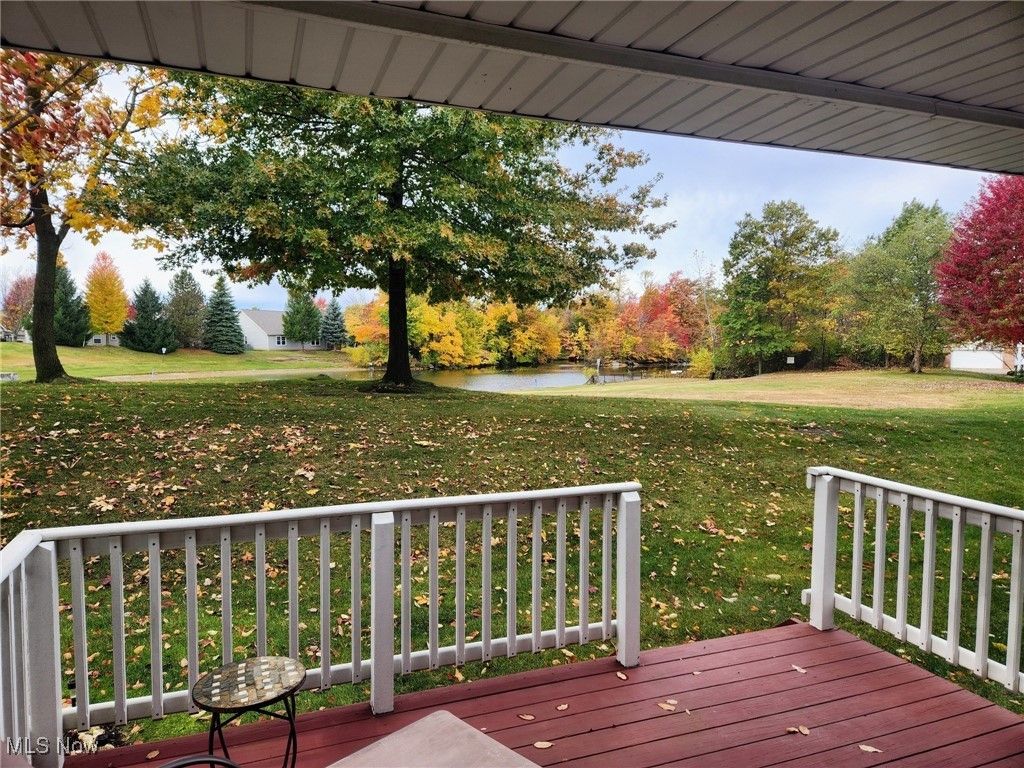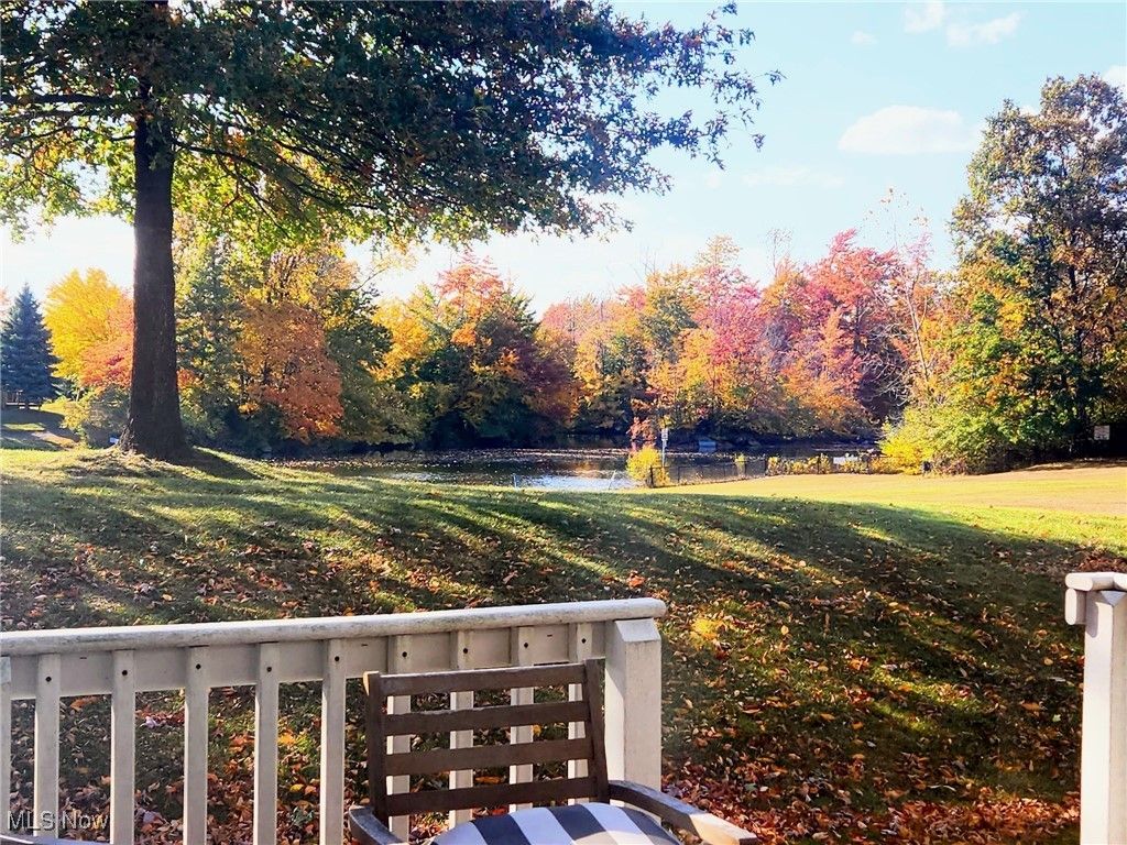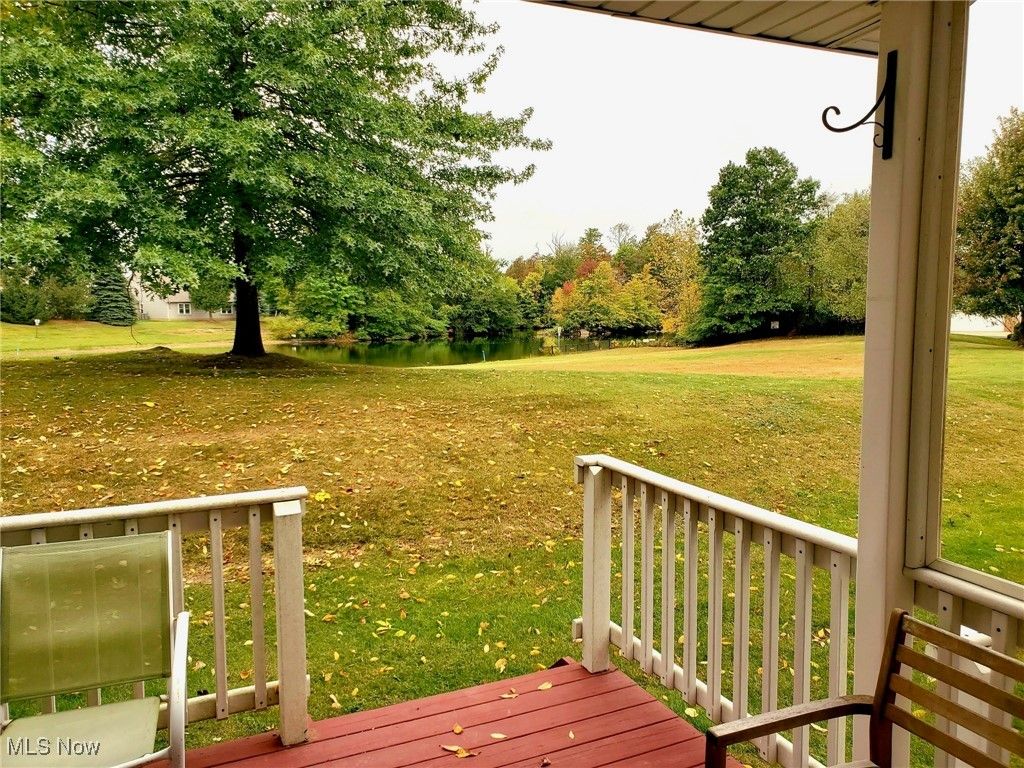 THIS could be THE PLACE! Welcome to this lovely updated townhome! You are greeted by a beautifully updated kitchen, with quartz, waterfall counter, white cabinets, faux wood tile floors, tile backsplash and stainless appliances! There is space for an "eat in" table or as as storage/drop zone area! The kitchen holds both storage and laundry closets for convenience. As you move into the dining and living space the tile floor continues throughout the main floor! It is a great open floor plan with sliding glass door that leads to the covered back deck and views of the pond, and park area beyond!! The primary bedroom is located on the second floor and has a stunning vaulted ceiling, window seat and 3 closets!! The second bedroom is ample sized and has a large closet. The main bath has an updated black/white/grey design with granite counters, tile floor, and spotless surround tub/shower! Updates include new roof ('20), dishwasher ('23), washer/dryer ('20), HWT (17)