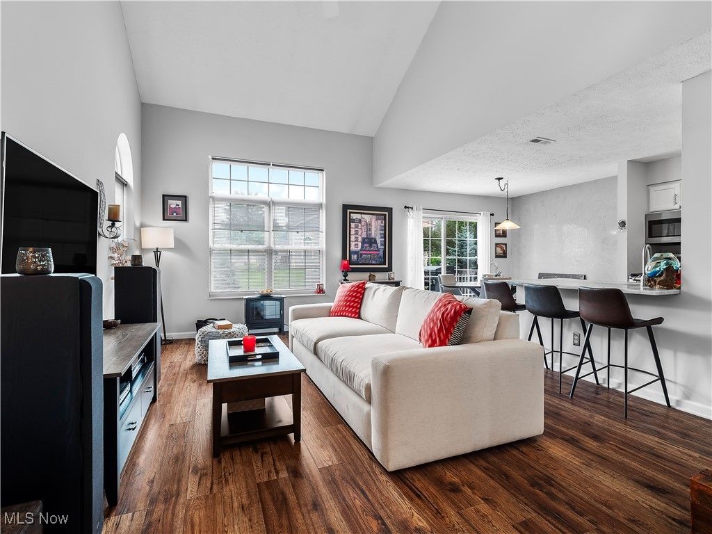 Welcome to this 3 bedroom, 2 full bath Townhome in Middleburg Hts located in the Crystal Lake Villas This home features vaulted ceilings, an open concept floor plan and is very tastefully updated with fresh, new clean paint colors throughout (2024). Tons of natural light and this is a very desirable floor plan with a nice back yard view. Nothing to do but move in and enjoy the cosmetic updates as well as all the big stuff! You'll love the first floor bedroom (currently used as an office) with attached full bath! Updates include: New Roof (2023), New Deck (2023), LVP flooring throughout the entire first floor vaulted great room and office, Carpet (2021), A/C (new coil) and Furnace (2022), New Quartz kitchen (2024) with white cabinets, Newer lighting fixtures throughout. All newer stainless steel kitchen appliances stay (and it's a gas stove), includes washer/dryer in laundry room too! A master bedroom with walk-in closet and vaulted ceiling is upstairs, along with a third bedroom and second full bath. This home also has a 2 car attached garage with a man door out to the backyard (an upgrade when building). One of the most convenient locations with easy access to 71 and 480 and the Middleburg Hts. Community Center down the road. Don't miss this one!