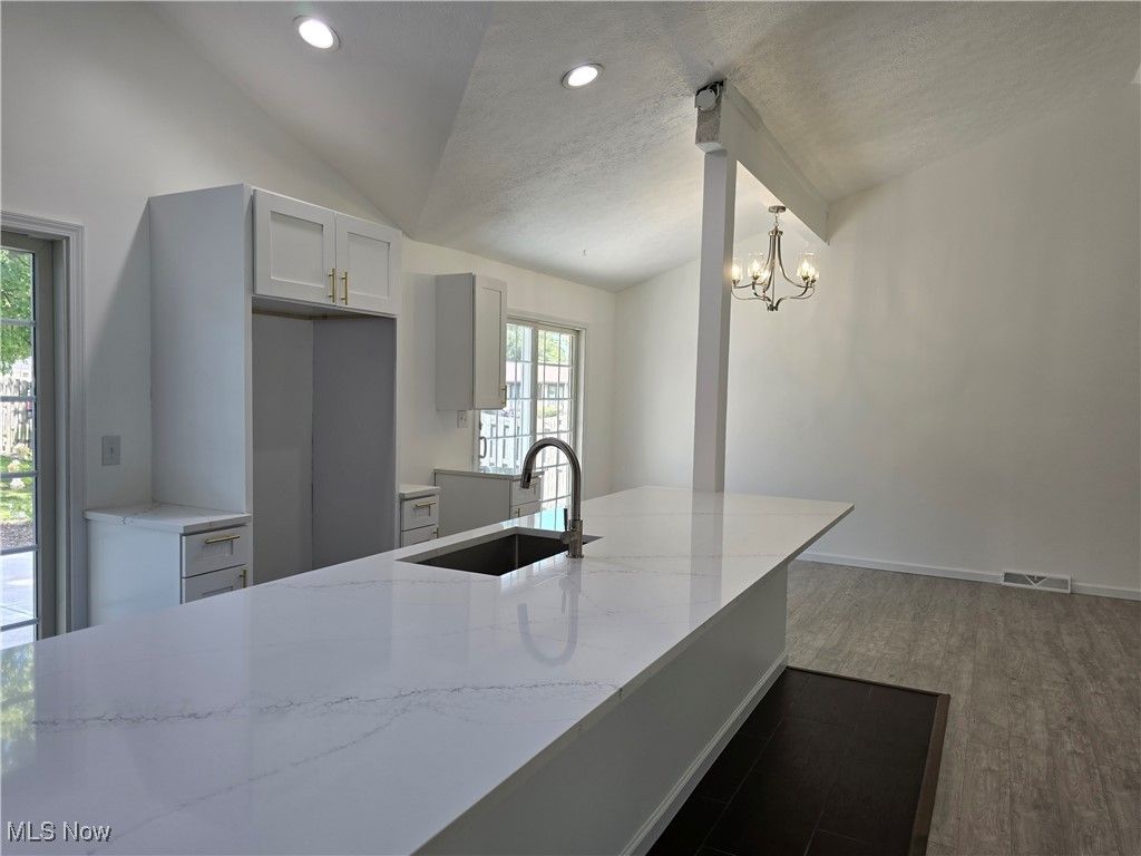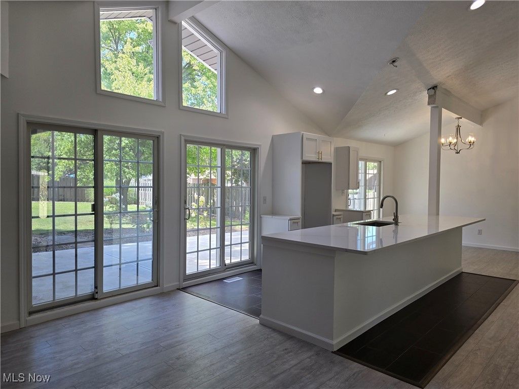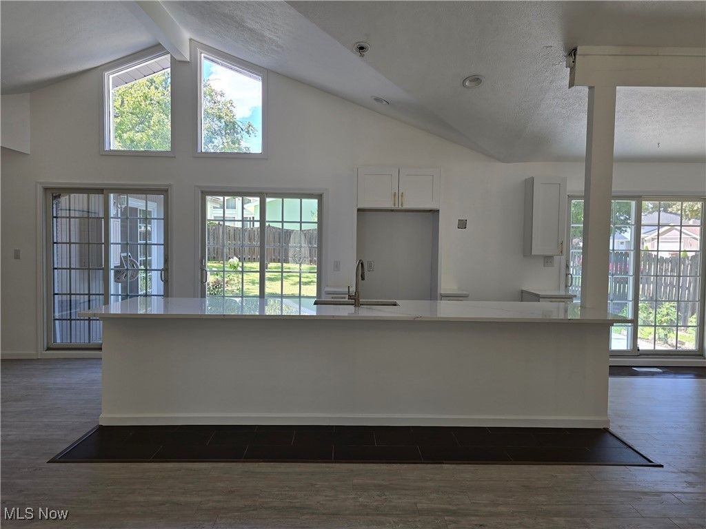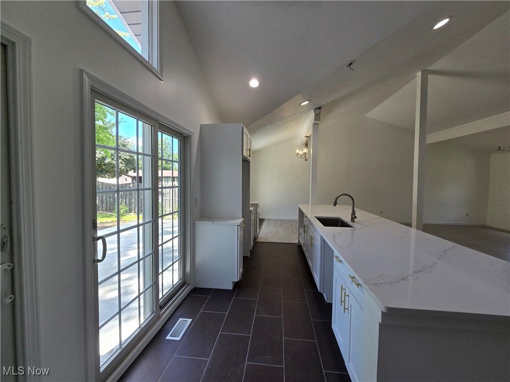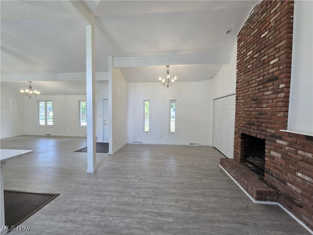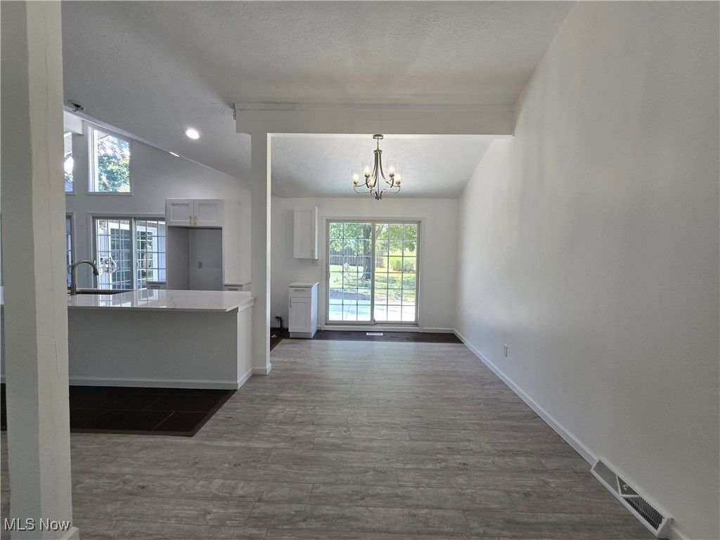 Welcome to this beautifully remodeled 4-bedroom, 2-bathroom, spacious ranch located on a corner lot. This home is redesigned with a modern look and move-in ready. This home has been fully updated on the inside. Walk into a bright and stunning open floor plan living space. This space is perfect for entertaining. With high vaulted ceilings and natural filtered light that makes this space feels spacious and cozy. The kitchen is equipped with an extra-large island, new cabinets, and quartz countertops. Glass sliding doors lead to the back patio by the dining room and living room entry. High ceilings throughout the house elevate the space. New luxury vinyl floors throughout, as well as new lighting. The master bedroom has double closets and a master bath with a walk-in shower. The master bedroom has a walkout entry to the back porch. Large bedrooms with double closets in two bedrooms and an extra-large closet in the fourth. The laundry room can also be used as a mud room. Concrete driveway, walkway, and back patio are new. New interior doors. Fresh paint throughout. New roof approx. 5 yrs. This is a must-see! Schedule your showing today.