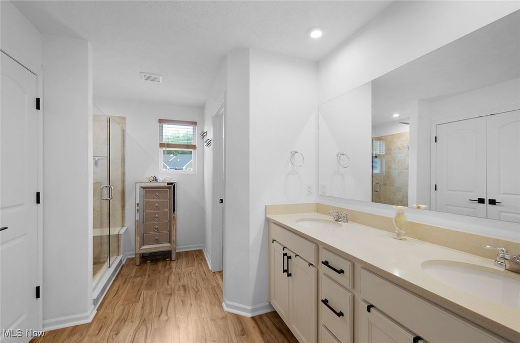 Why Build new and pay more? This was built in 2022 and it is LOADED WITH UPGRADES! Location Location.......Welcome to Westlake! Excellent location to Crocker Park, Lake Erie, Huntington Beach, Downtown Cleveland and Hopkins Airport! Amazing 2,047 finished sq ft. Gourmet kitchen with "High End Stainless Steel" appliances. Granite Counters, upgraded extra large island. Luxury Vinyl flooring throughout. Great Room, Dining Room, Morning Room. Private backyard patio faces the water. First floor half bath includes a Smart Bidet and Quartz Counters! Second floor provides the laundry room with an upgraded washing machine with two compartments for cleaning, dryer and utility tub! The private owners suite includes a beautiful water view, tray ceiling and ceiling fan. The owner's private bath offers an upgraded shower fixture, bench seat, dual sinks with Quartz counters, private Bidet. Extra Large walk in closet with built in cabinets! Beautiful Luxury Vinyl flooring and Barn doors give this home great charm! Second floor guest bath includes Italian Tile from floor to wall, Bidet, self heating Jacuzzi Tub, upgraded shower fixture, doors and Quartz Counters! The second floor utility room has storage space and a tankless water heater! The Two car garage is completely finished, comes with a storage rack, storage cabinets, utility sink and a Smart Home Garage Door Opener! The monthly HOA is only $154 and provides a low maintenance home. (wallpaper to be removed if requested!) Come in and take a look! Seller is willing to look at all offers so let's make a deal!