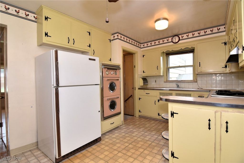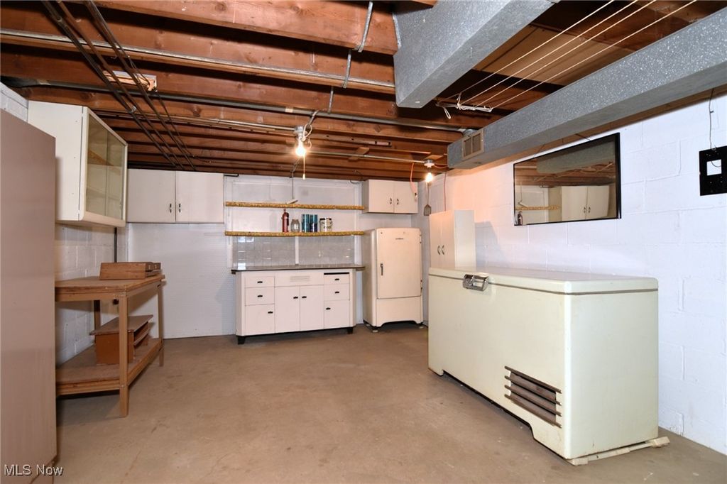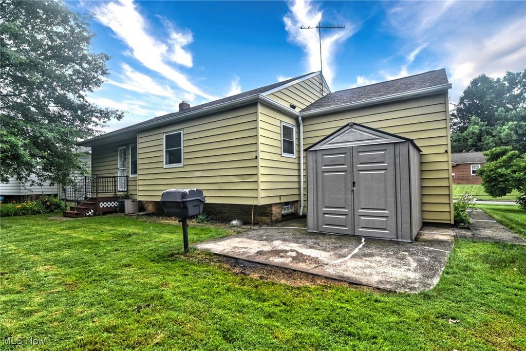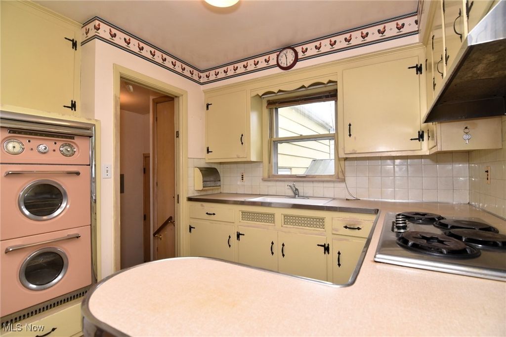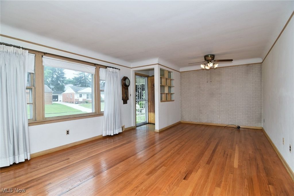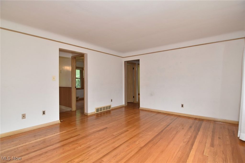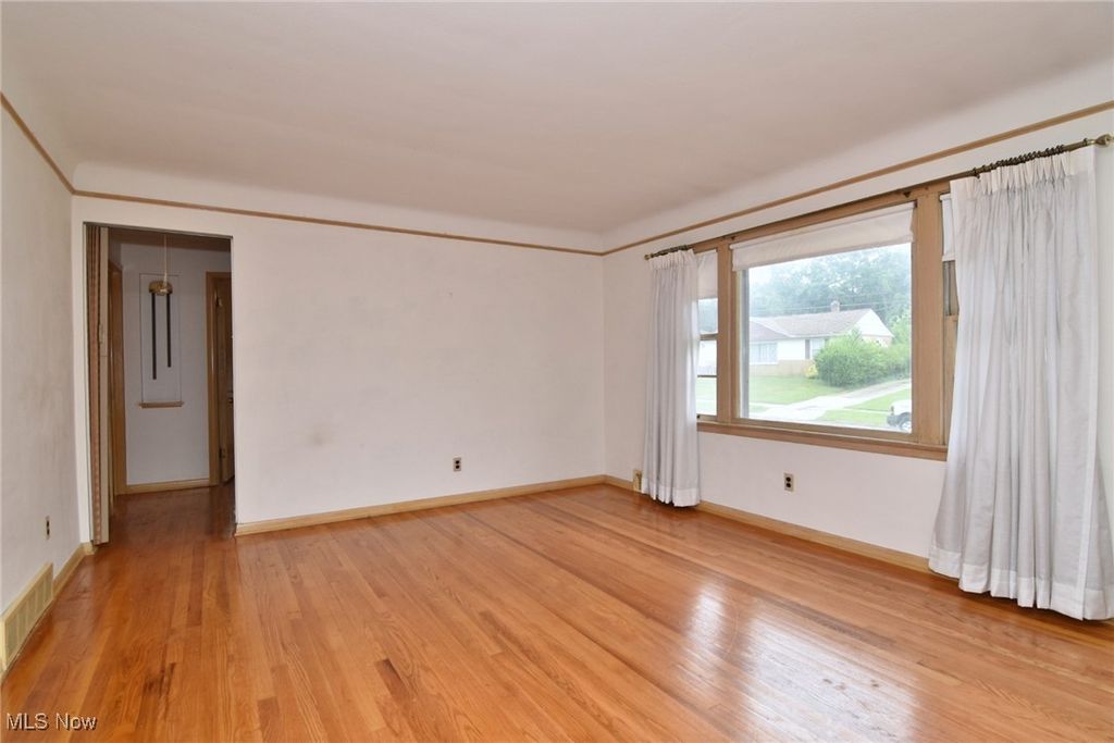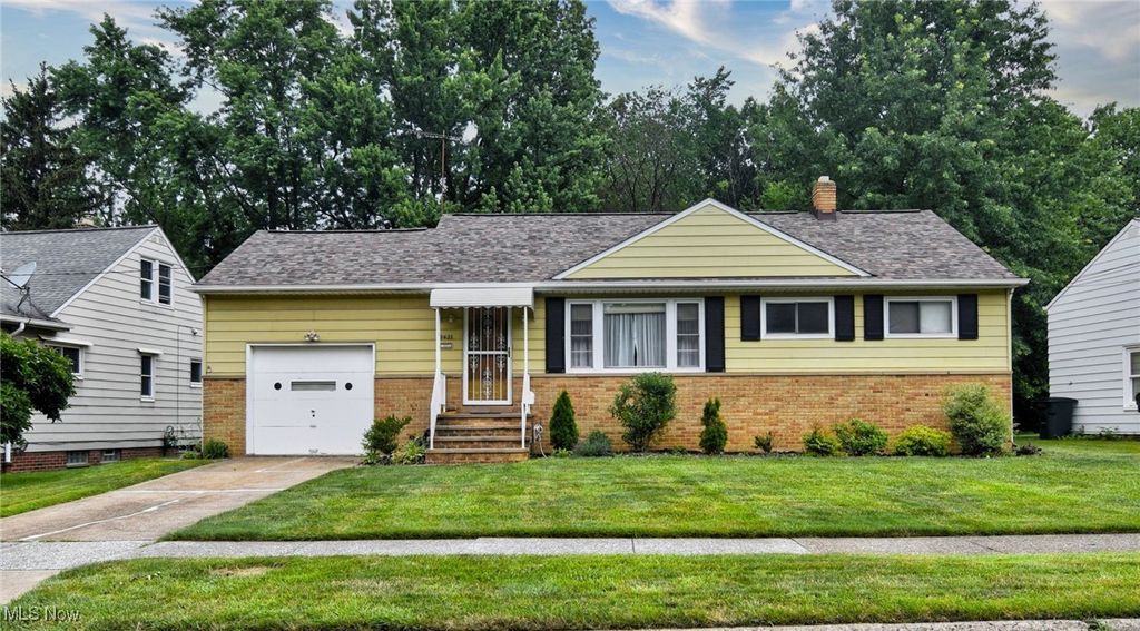This lovingly maintained Garfield Heights ranch has been in the same family since it was built in 1957! Enter through the front door into the large and light-filled living room with beautiful hardwood floors and mid-century accent shelving. Just off the living room you'll find the perfectly preserved kitchen with lots of counter workspace and cupboard storage. The casual dining area provides ample space to gather and looks out over the back yard. You'll find three nicely sized bedrooms on the first floor, all with hardwood floors and plenty of closet space. Charming full bath on first floor. Downstairs you'll find a finished basement area that will make a great family room, studio, or workout space, as well as the laundry and work areas. The large and peaceful backyard edged by grandfather trees backs up to Crudele Park. New roof 2024! Close to shopping and schools, with easy highway access.